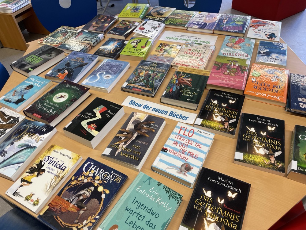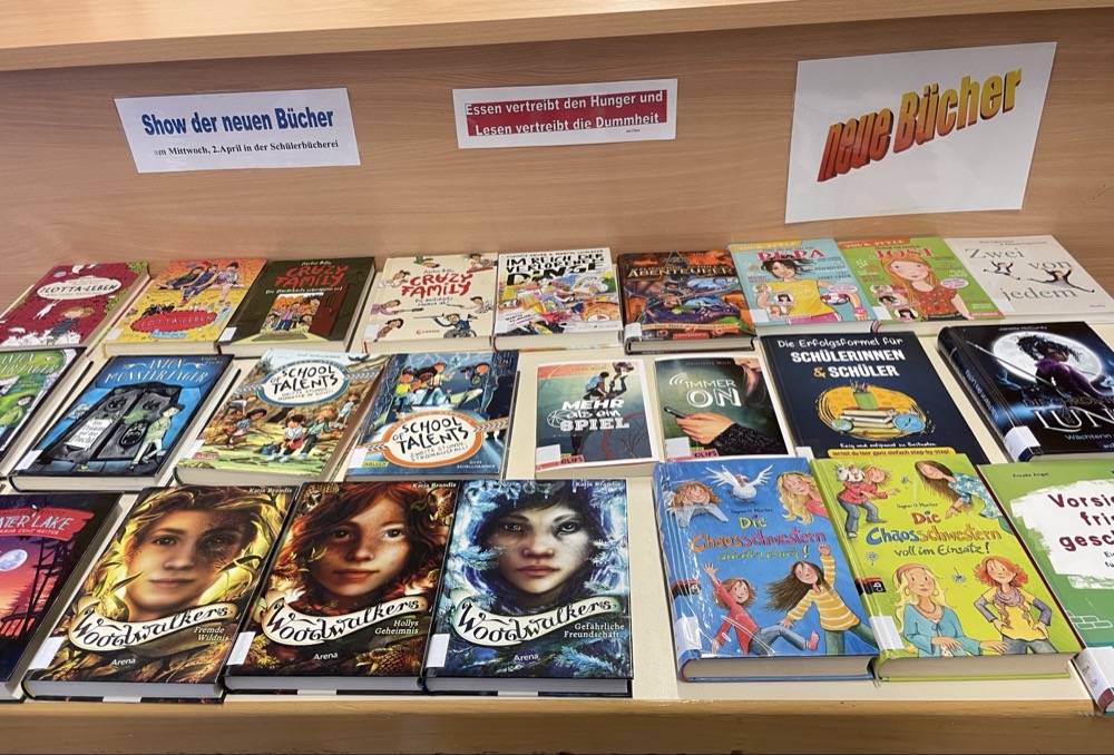 Am 2. April 2025 war es soweit! Fördervereinsmitglied Frau Madeleine Kranz hatte etliche AutorInnen angeschrieben und diese haben der AFS viele hochinteressante Bücher, teilweise sogar mit Widmung, zur Verfügung gestellt!!Nach zwei „Einbindenachmittagen“ zusammen mit Frau Kibbert-Ackermann und dem Etikettieren der Bücher wurde jetzt allen SchülerInnen die Möglichkeit gegeben, sich für die Osterferien mit tollstem Lesestoff zu versorgen. Ein Osterrätsel, eine Osterbastelecke und Osterschokohäschen für jedes ausgewählte Buch rundeten das Angebot ab. Auch an dieser Stelle gilt unser Dank dem gesamten Förderverein für sein großes Engagement.