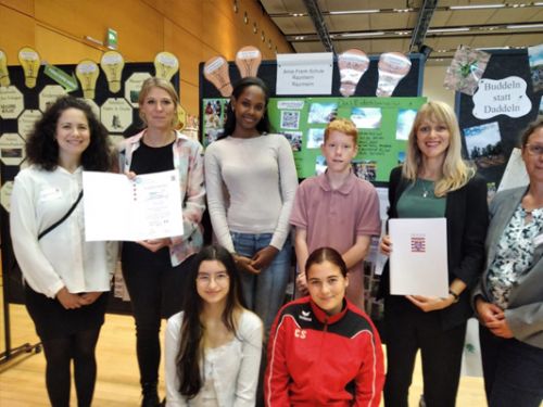 Am 26. September 2025 zeichneten der Kultusstaatssekretär Dr. Manuel Lösel und der Umweltstaatssekretär Michael Ruhl insgesamt 136 Schulen, darunter auch die Anne-Frank-Schule (AFS), erneut für ihr Engagement in Nachhaltigkeit, Klima- und Umweltschutz aus. Vier Schülerinnen und Schüler des Jahrgangs 8, die Lehrkräfte K. Bender ...