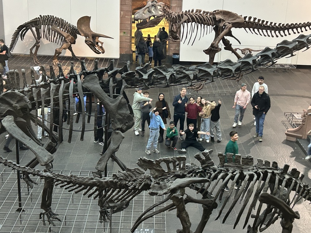Im Rahmen des Wandertages am 27. November 2025 besuchte der sechste Jahrgang der Anne-Frank-Schule das Senckenberg-Museum in Frankfurt-Bockenheim. Aufgrund der großen Nachfrage erhielt nur eine Klasse eine Führung, während sich die anderen Klassen in Begleitung ihrer Lehrkräfte frei im Museum bewegen konnten. Dabei konnten sie viele sehenswerte Ausstellungen entdecken, darunter unter anderem: