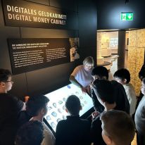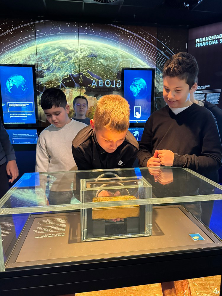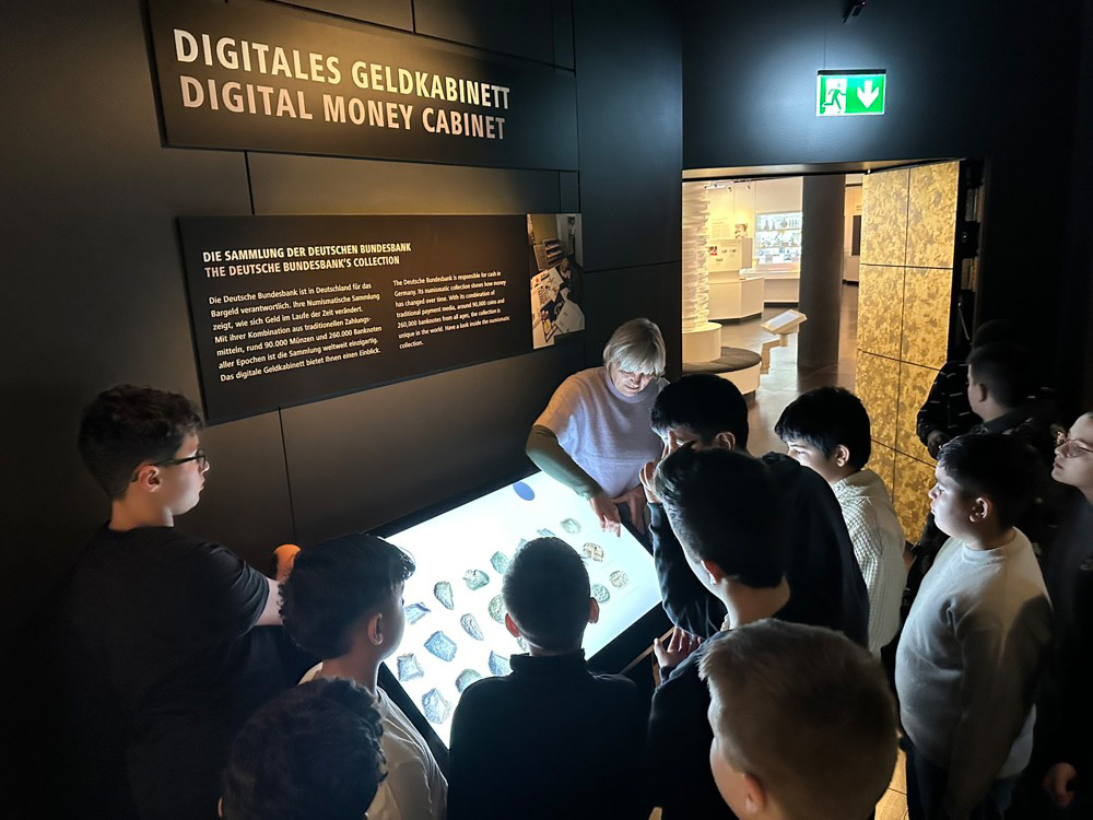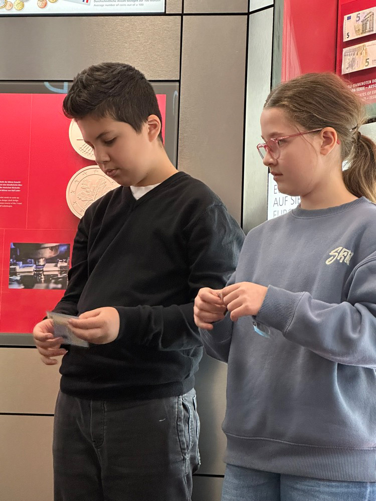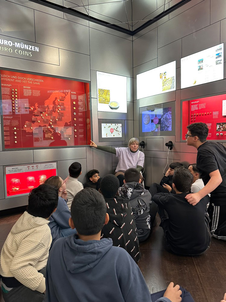 Den Abschluss der Projektwoche bildete ein Ausflug ins Geldmuseum in Frankfurt, wo wir eine Führung über die Entstehung von Geld und dessen Herstellung erhielten. Außerdem untersuchten wir Scheine auf ihre Echtheit und lernten so, woran man Falschgeld erkennen kann.