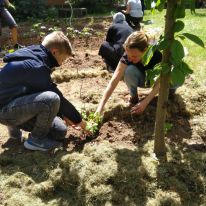 Seit Februar 2020 wird in unserem Schulgarten der Anne-Frank-Schule fleißig geackert. Verantwortungsvoll und einfühlsam arbeiten eine Intensivklasse und eine 5. Klasse im Schulgarten. In den Ferien sorgen die Schulbetreuung und einige Eltern für das Wässern und Unkrautjäten.