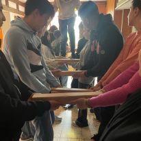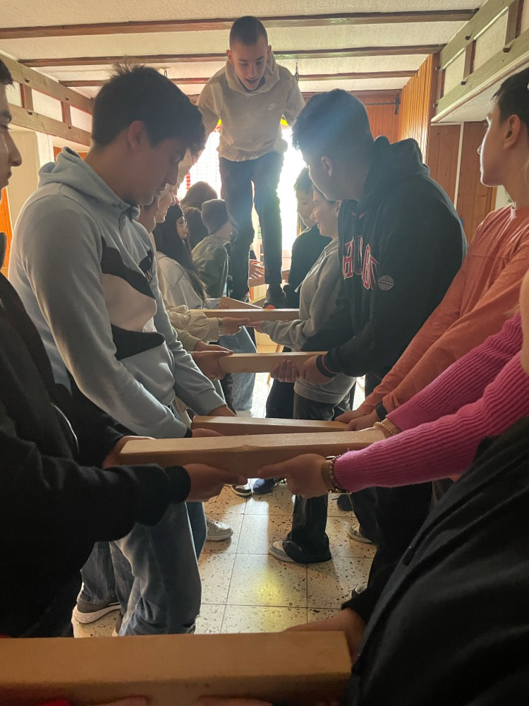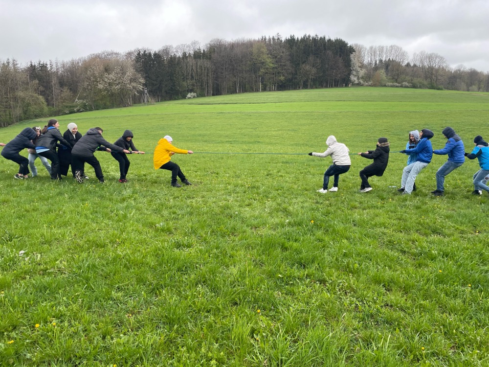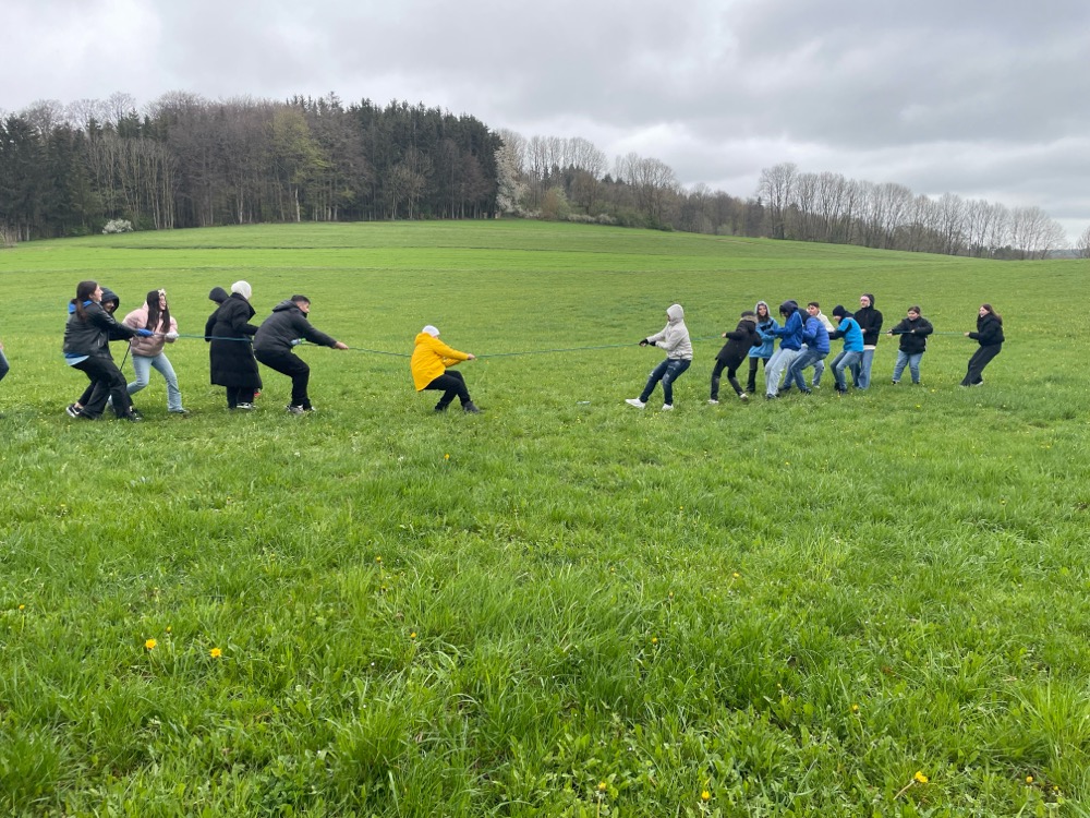 Am Dienstag hatten alle ein appetitliches Frühstück und genossen anschließend eine Stunde Freizeit. Im Anschluss waren wir in den Seminarräumen und hatten einige Aufgaben als Klasse zu erledigen. Zum Beispiel mussten wir mit dicken Kanthölzern eine Hängebrücke bilden. Viele unserer Mitschülerinnen und Mitschüler gingen dann über die Hängebrücke. Das erforderte viel Mut und Vertrauen in die Klassengemeinschaft.