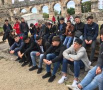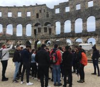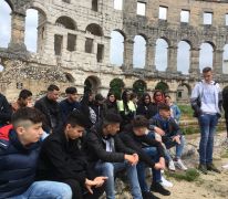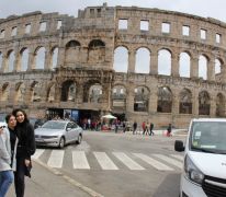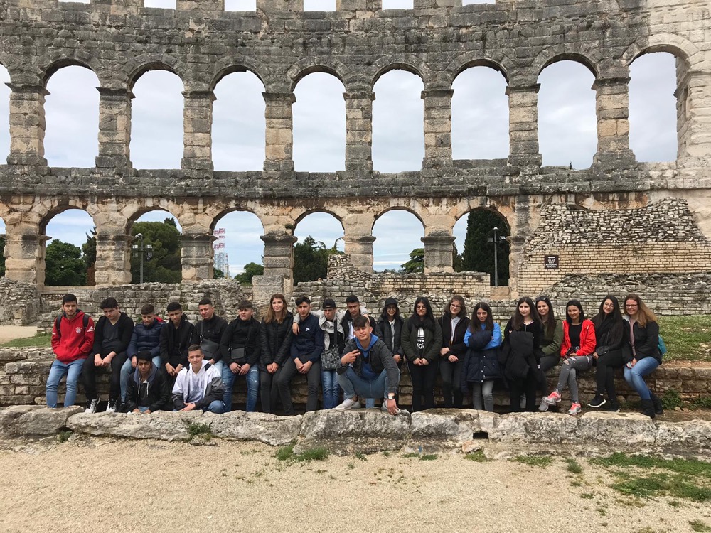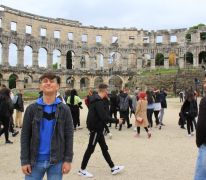 Montag: Unser erster Ausflug stand bevor und alle warteten schon an den Bussen, doch da eine Gruppe verschlafen hatte, konnten wir diesen Ausflug nur etwas verspätet antreten. Als wir nach etwas Fahrt an unserem Ausflugsziel Pula ankamen, waren alle sehr gespannt. In Pula besuchten wir ein Amphitheater, wo unsere Klassen eine Führung auf Deutsch erhielten. Dort lernten wir etwas über die Geschichte des Theaters und der Stadt Pula, welche schon zu Römerzeiten sehr wichtig für Krieg und Handel war. Im Anschluss hatten wir etwas Freizeit, in der wir die Stadt erkunden konnten.