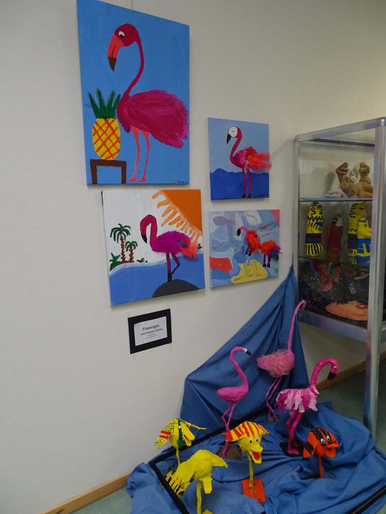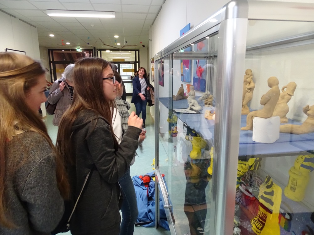 Im ersten Stock konnten die Zuschauer anschließend eine große Vielfalt an Kunstwerken und auch Gedichten besichtigen. Vor allem die Vielfalt der unterschiedlichen Techniken und Kunstwerke fiel den Besuchern auf, die Kinder durften sich über tolle Rückmeldungen freuen und teilweise sogar mit ihren Kunstwerken für die Zeitung posieren.