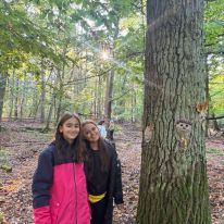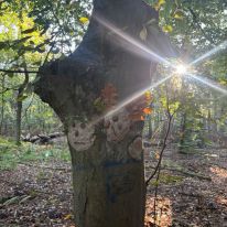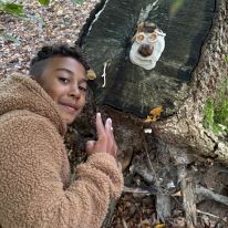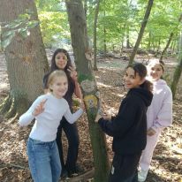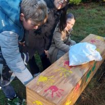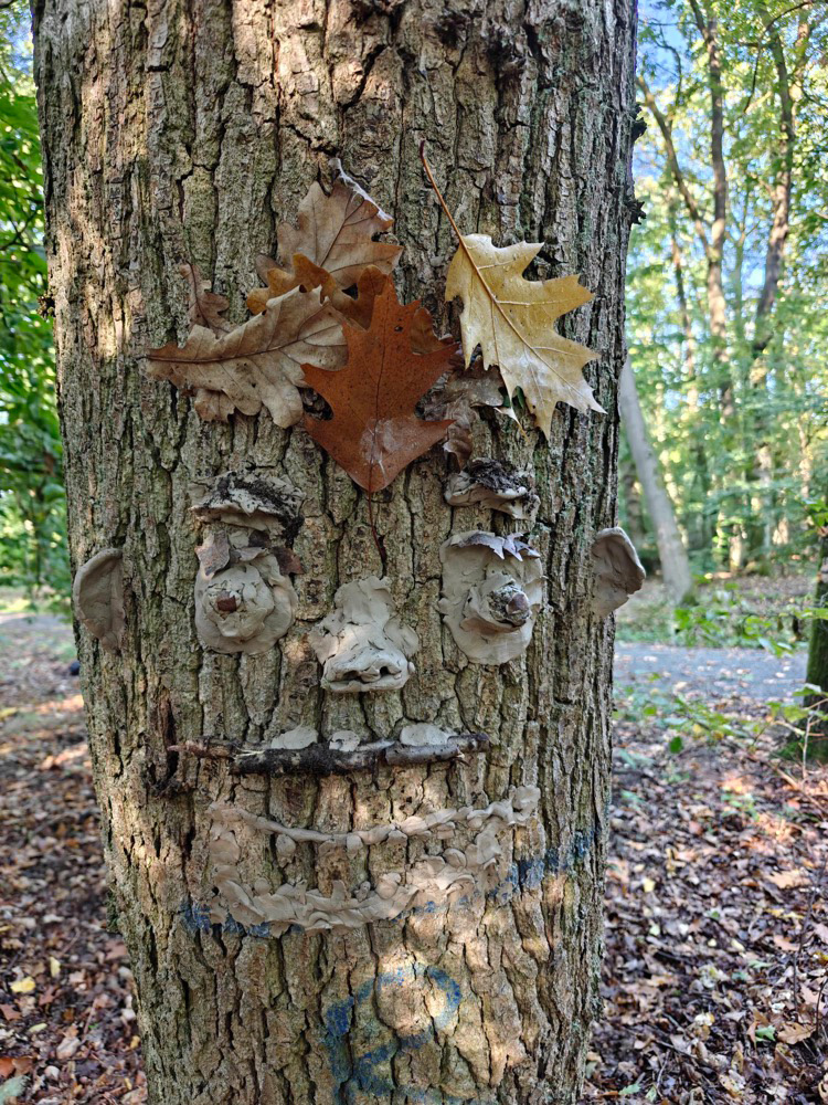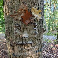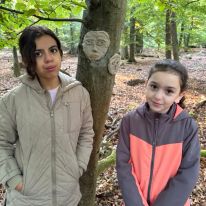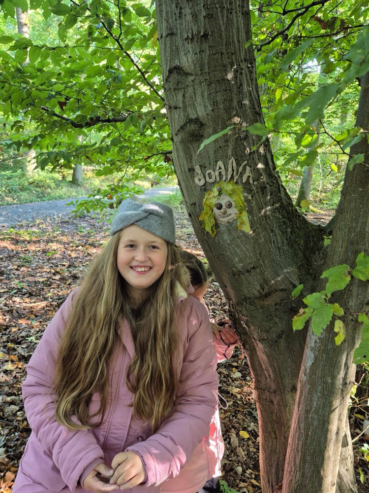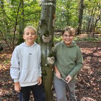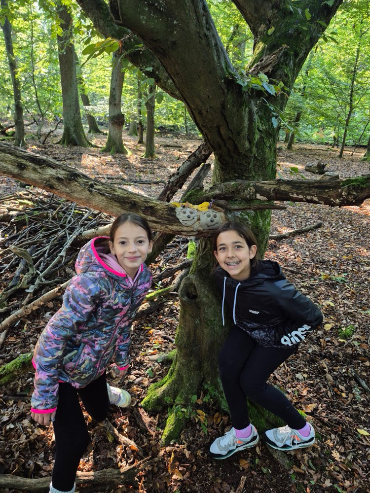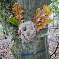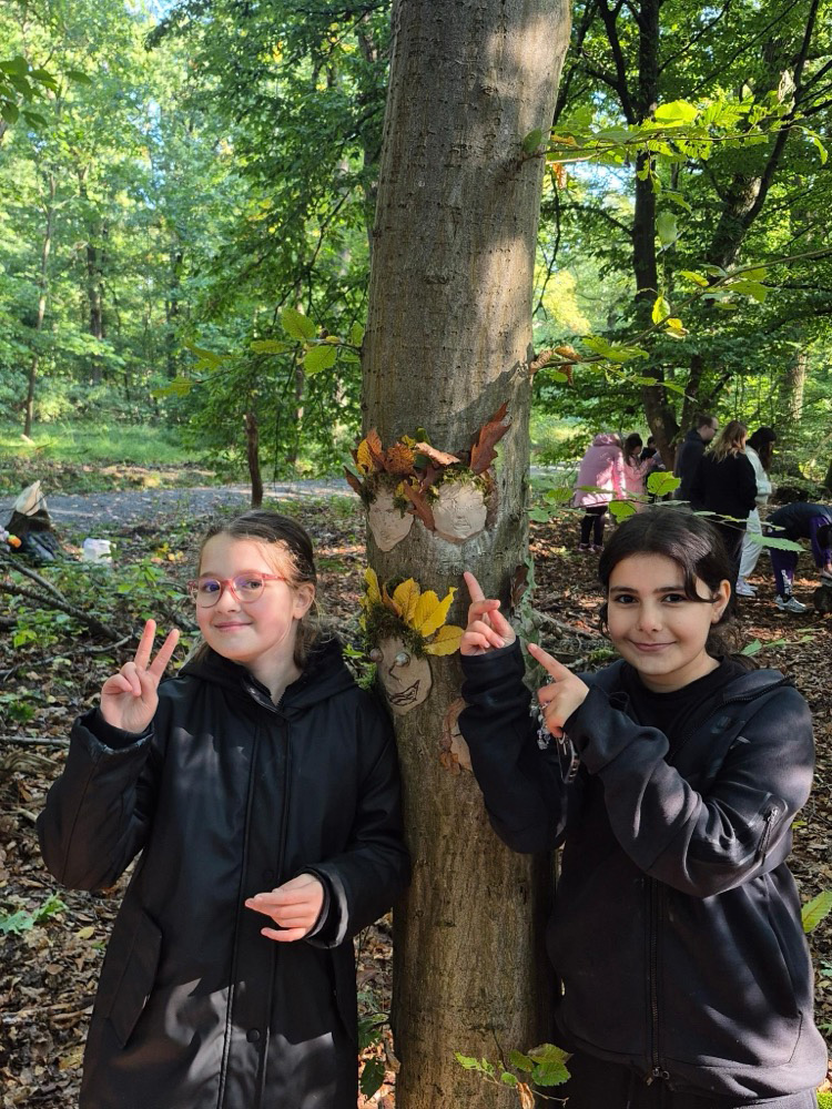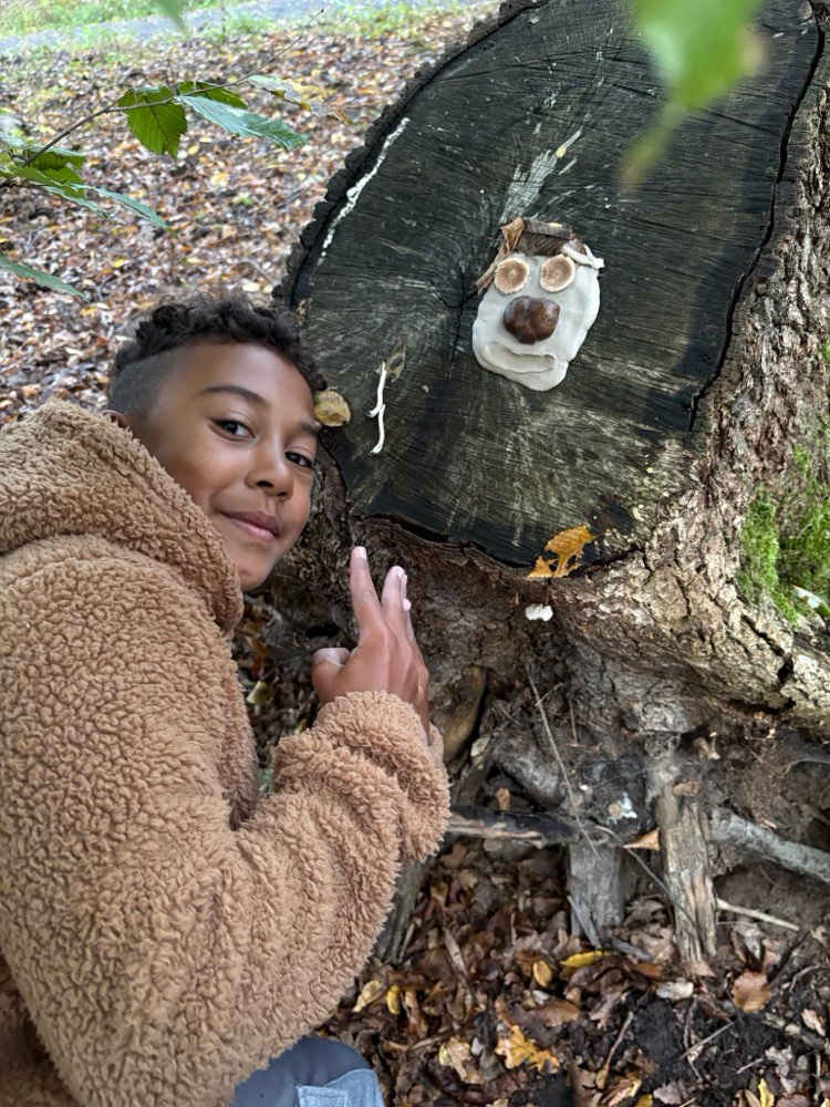 - Kreativ mit Naturmaterialien: Im Anschluss beschäftigten sie sich mit dem Thema Waldkunst. Sie gestalteten mit Ton fantasievolle Gesichter an Baumstämmen und lernten dabei, Naturprodukte bewusst einzusetzen.