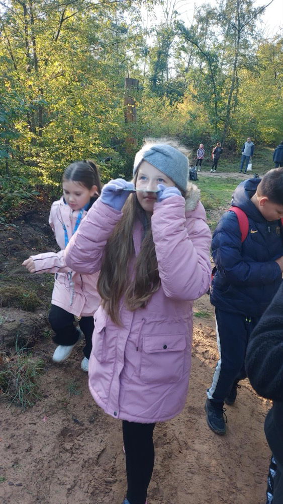 Zu Beginn versammelten sich alle Klassen und machten sich gemeinsam mit Karin Jechimer auf den Weg in den Wald. Dort erwartete die Kinder ein vielfältiges Programm: