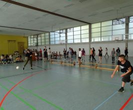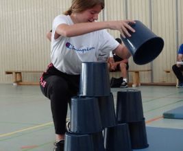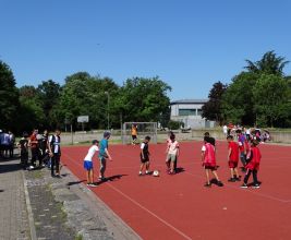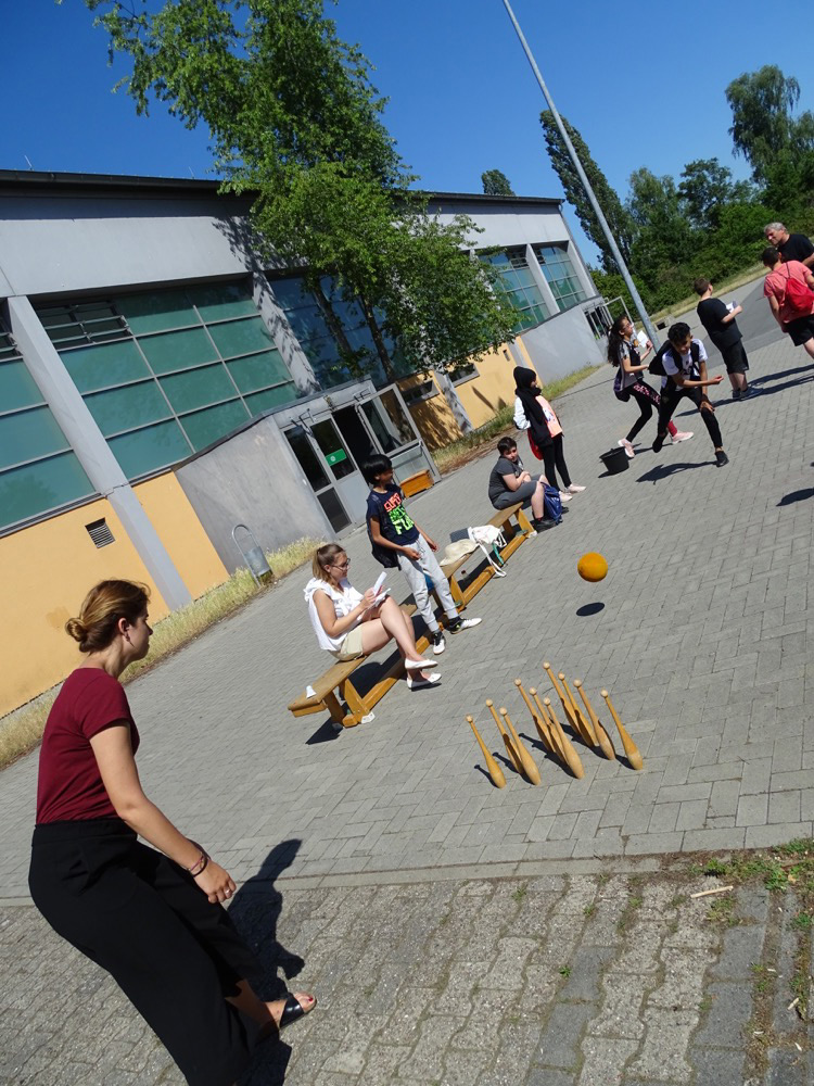 Traditionell lassen die Schülerinnen und Schüler der AFS das Schuljahr mit einer Klassenwoche ausklingen. Eins der Highlights in dieser Woche stellt immer das vom Fachbereich Sport organisierte Spielefest dar, das donnerstags stattfindet und an dem die Jahrgänge fünf bis sieben teilnehmen. In verschiedensten Disziplinen können die Schüler ihr Geschick unter Beweis stellen. Die Klassen treten zudem in einem Fußball- und einem Völkerballturnier gegeneinander an. Bei strahlendem Sonnenschein konnten am 27. Juni 2019 so Sport, Spiel und Spaß wunderbar miteinander kombiniert werden. Den Ausklang stellte die Siegerehrung dar, bei der auch die besten Leistungen bei den Bundesjugendspielen verkündet wurden.