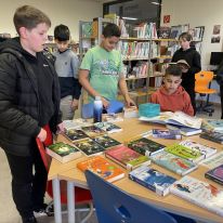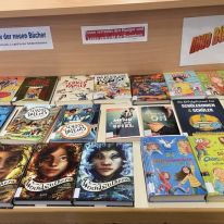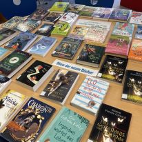 Am 2. April 2025 war es soweit! Fördervereinsmitglied Frau Madeleine Kranz hatte etliche AutorInnen angeschrieben und diese haben der AFS viele hochinteressante Bücher, teilweise sogar mit Widmung, zur Verfügung gestellt!!Nach zwei „Einbindenachmittagen“ zusammen mit Frau Kibbert-Ackermann und dem Etikettieren der Bücher wurde jetzt allen SchülerInnen die Möglichkeit gegeben, sich für die Osterferien mit tollstem Lesestoff zu versorgen. Ein Osterrätsel, eine Osterbastelecke und Osterschokohäschen für jedes ausgewählte Buch rundeten das Angebot ab. Auch an dieser Stelle gilt unser Dank dem gesamten Förderverein für sein großes Engagement.