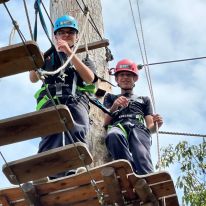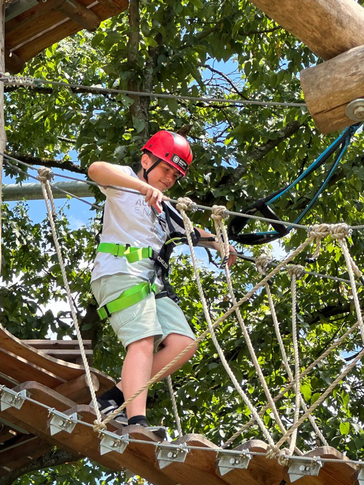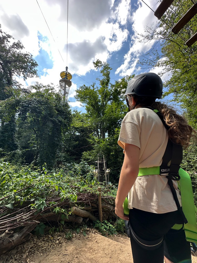 Am Donnerstag, 3. Juli 2025, führte ein solcher Ausflug die Klasse 7.4 in den Kletterwald nach Frankfurt. Die Schülerinnen und Schüler hatten großen Spaß. Besonderer Beliebtheit erfreuten sich die zahlreichen Seilbahnen, die z.T. in schwindelerregender Höhe starteten. Viele gingen in den verschiedenen, mitunter sehr hohen und anstrengenden Trails bis an ihre Grenzen oder sogar darüber hinaus. Mit großem Teamgeist feuerten die Jugendlichen sich gegenseitig an und trugen sich dadurch gegenseitig durch die kniffligsten Hindernisse.