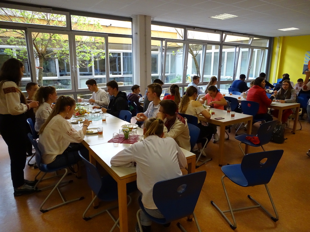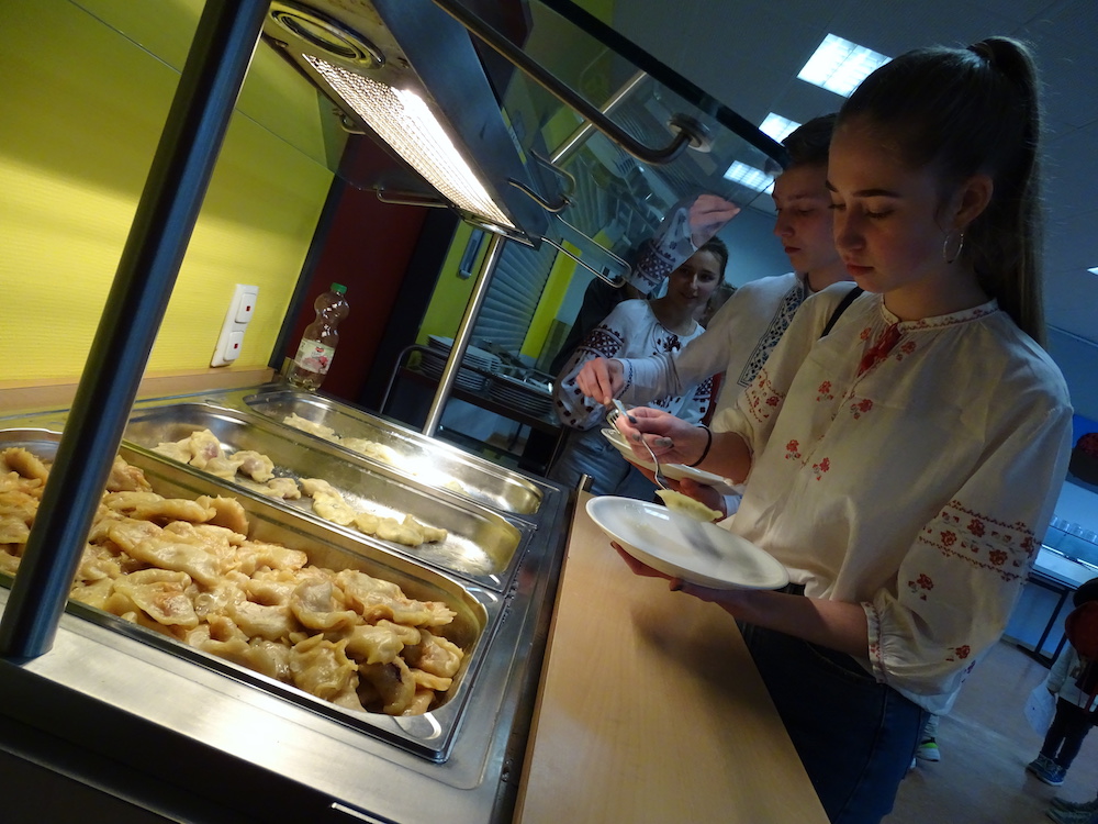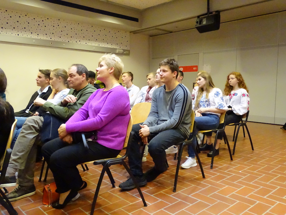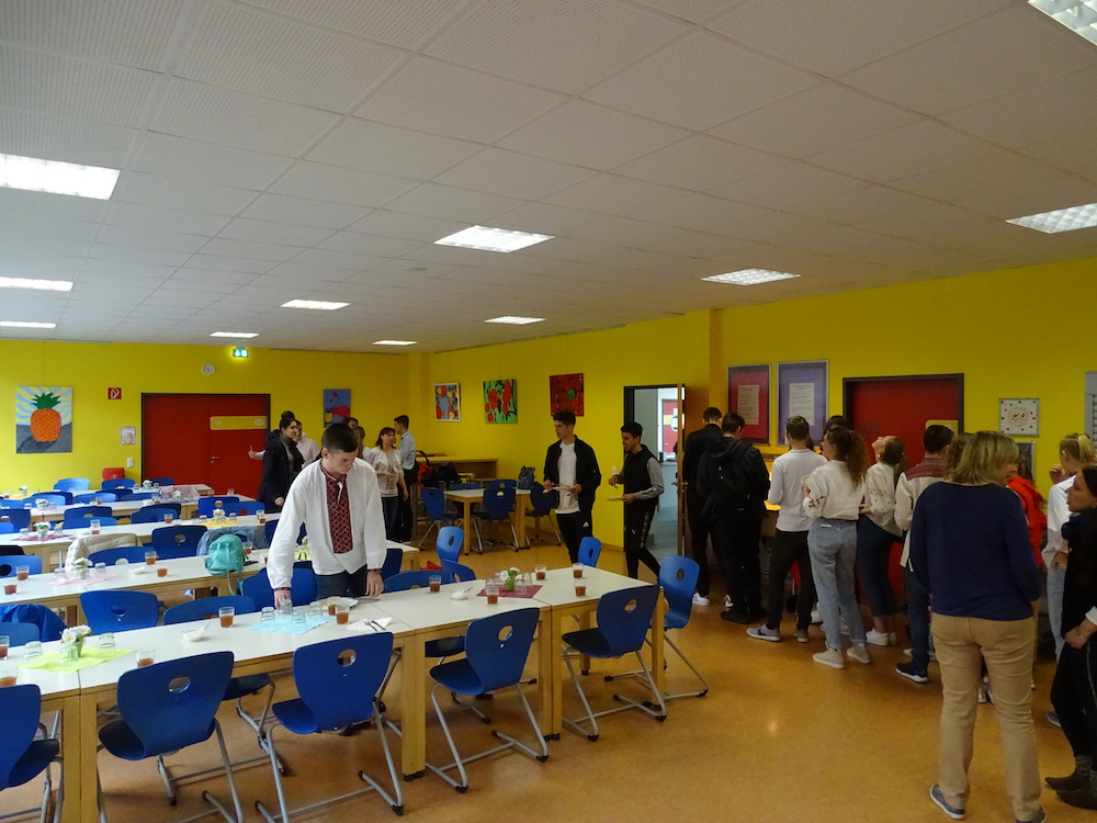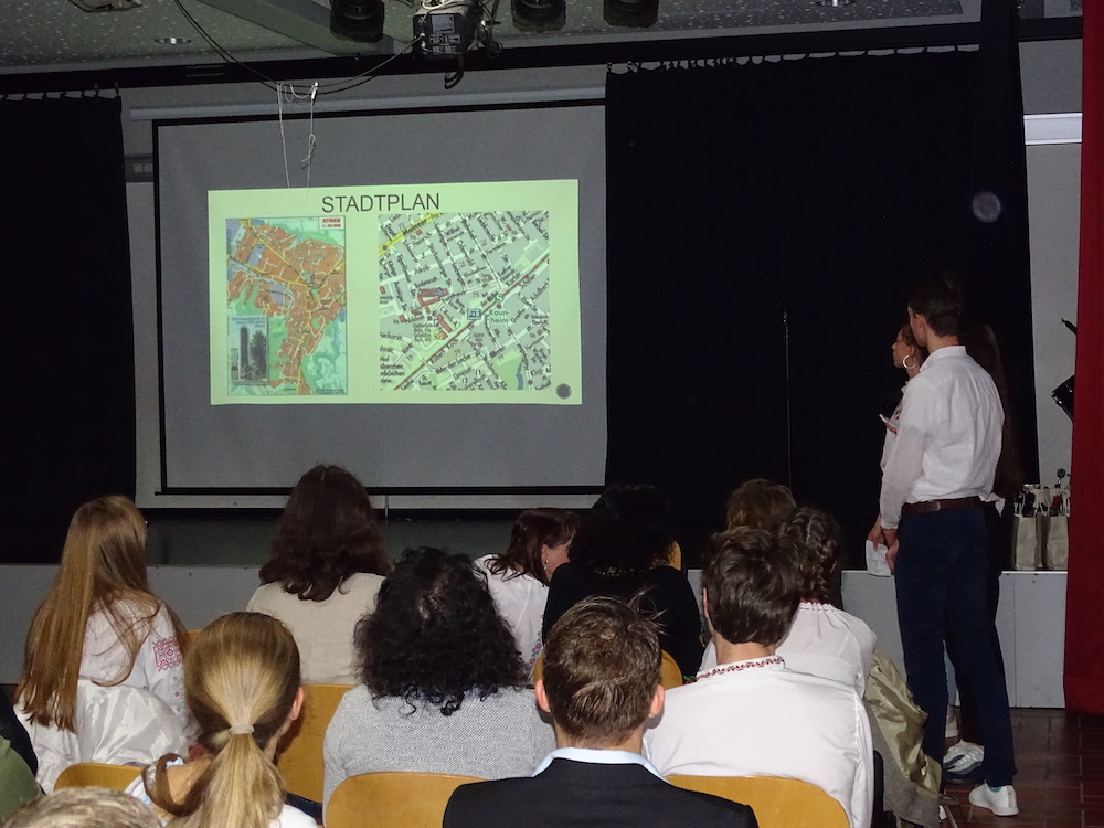 Wir haben mit 20 ukrainischen Schülern mit großem Vergnügen eine Stadtrallye durchgeführt. Mit den Schülern konnten wir sehr gut auf Englisch kommunizieren, sie waren sehr interessiert und haben viele Fragen gestellt. Wir haben auch über die Ukraine Fragen gestellt und sie waren bereit, unsere Fragen zu beantworten. Das hat uns viel Spaß gemacht und wir sind froh, neue Freundschaften geschlossen zu haben.