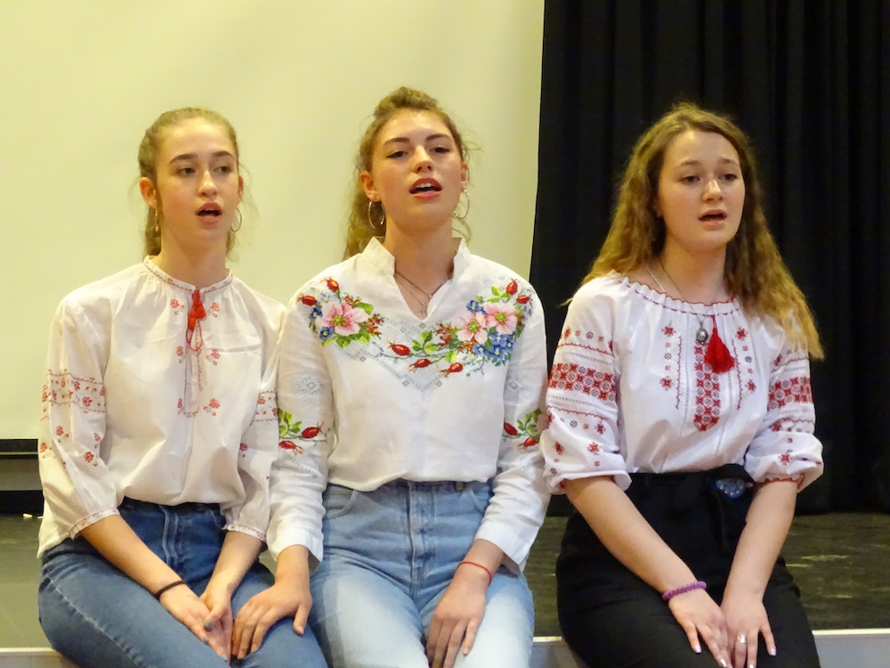 Bei der Abschlussveranstaltung waren wir fasziniert, wie talentiert die ukrainischen Schüler sind. Sie haben auch tolle Informationen über Raunheim präsentiert, wobei wir selber manche Sachen vorher nicht wussten. Die Ukrainer haben auch ihr Land vorgestellt und für uns ukrainisches Essen vorbereitet.