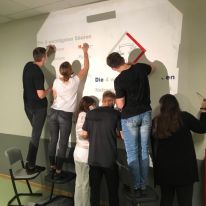 Wir sind sehr froh, so eine Spur von uns in der Anne-Frank-Schule hinterlassen zu dürfen. Wir konnten zeigen, was wir gelernt hatten, waren dabei kreativ und daraus sind zwei schöne Bilder entstanden, die den anderen Schülern einen Einblick in Chemie in der Klasse 10 ermöglichen, und die dort auch hoffentlich lange bleiben.