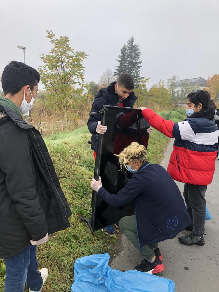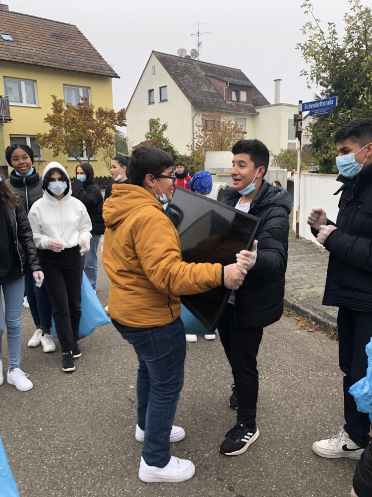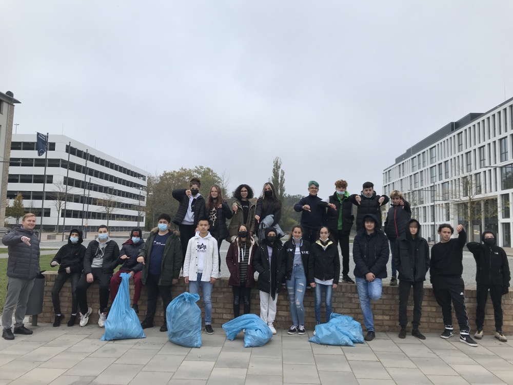 Heute ist Freitag, der 29.10.2021, und die Jahrgänge 5, 7 und 8 sowie die IK-Klassen hatten Dreck-weg-Tag. Unsere Klasse, die 8.4, war für die Christoph-Kolumbus-Straße und deren Umgebung zuständig. Wie an jeden Dreck-weg-Tag bildeten wir Gruppen (dabei sind wir uns nicht immer alle einig). Jede Gruppe bekam einen Müllsack und Handschuhe. Wir gingen los auf Müllsuche, aber viel Müll fanden wir dieses Jahr, im Gegensatz zu bisherigen Jahren, ehrlich gesagt nicht. Nach einiger Zeit verließen wir deshalb unser „Revier“, um an anderer Stelle Gutes zu tun für die Umwelt und die Natur. Als unsere Sammelzeit vorbei war, gingen wir wieder zur Schule. Dort bekamen wir von unserer Klassenleitung als Dank fürs Sammeln ein Eis und durften dann ins Wochenende starten. Das war unser Dreck-weg-Tag 2021.
