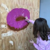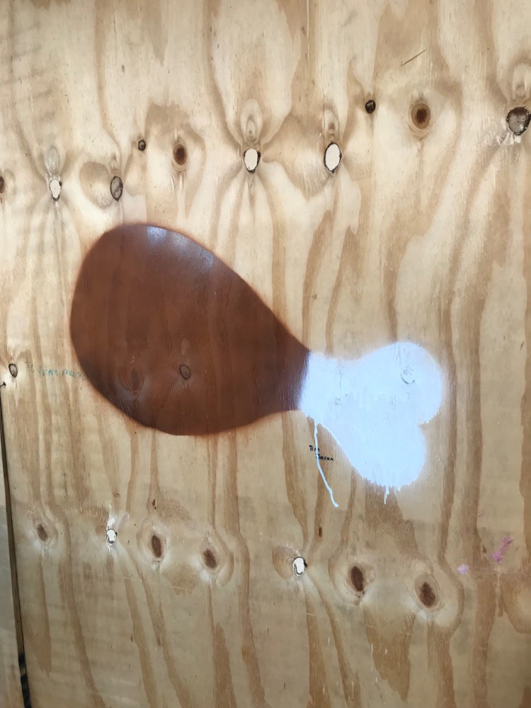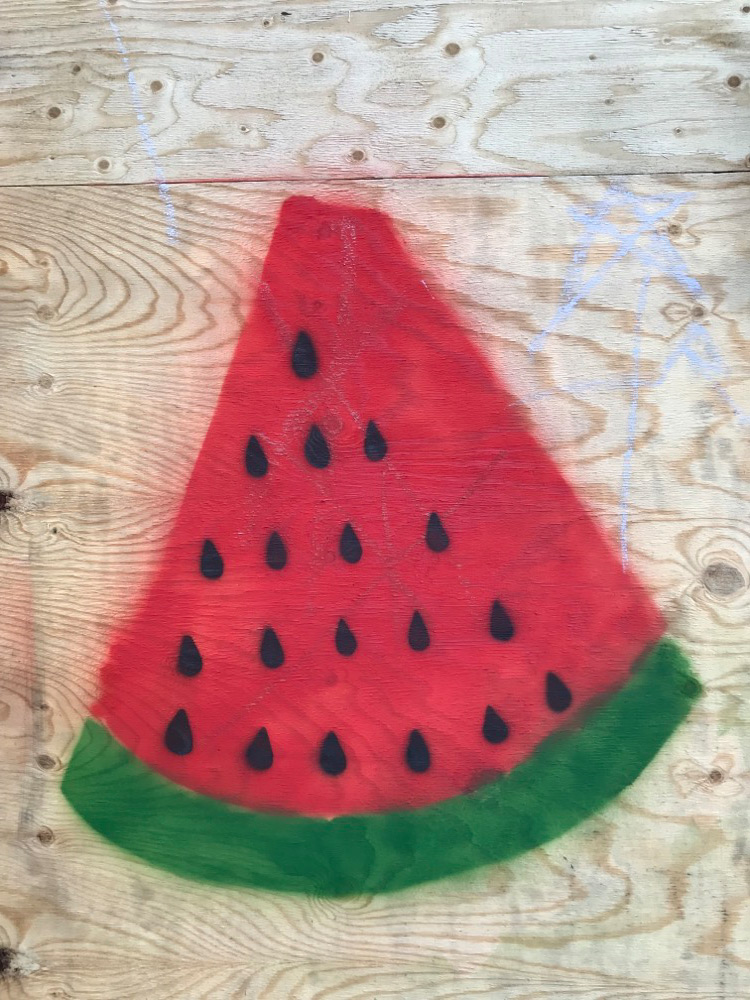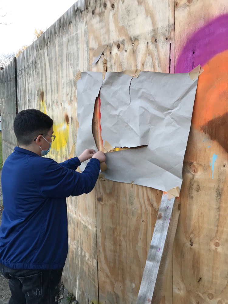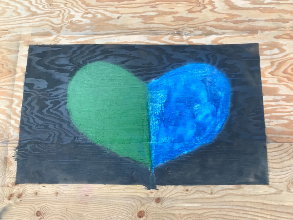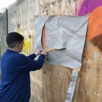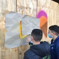 Die Ideenfindung für das Verschönern der Baustellenwand war komplett uns überlassen. Wir sollten selbst gucken und entscheiden, was man auf die Wand bringen könnte. Mit Herrn Noack gingen wir so vor, dass wir zunächst unsere Ideen vorgestellt haben. Wenn man eine Skizze fertig hatte, besprach man mit Herrn Noack wie man am besten Schablonen machen könnte, um die Motive am Ende mit Spraydosen auf die Baustellenwand zu sprühen. Es hat viel Spaß gemacht und man konnte seine Ideen gut umsetzen.