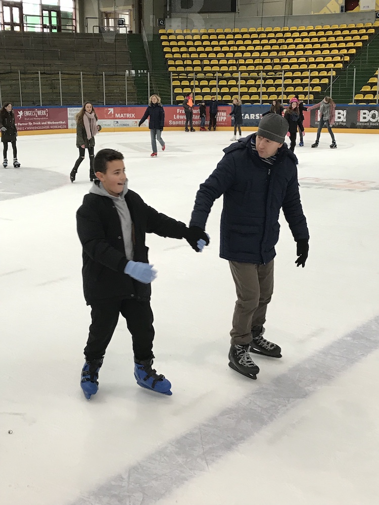 Am 5.2.2019 war unser Wandertag und wir waren Schlittschuhfahren in Frankfurt. Wir sind mit der S-Bahn und U-Bahn unterwegs gewesen. In der Eissporthalle trafen wir auch einige andere Klassen von der AFS.