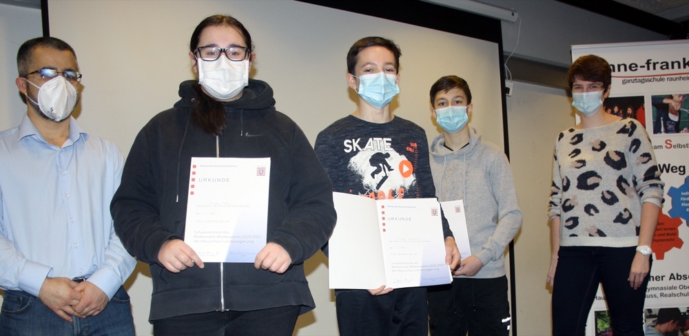 Mit der ersten Runde des Mathematikwettbewerbs konnten die Achtklässler und Achtklässlerinnen der Anne-Frank-Schule nun zeigen, dass es zumindest in Mathematik keinen hohen Leistungsabfall gegeben hat. Der Wettbewerb fand für alle hessischen Schülerinnen und Schüler der 8. Klassen am 3. Dezember 2020 statt. Der stellvertretende Schulleiter und selbst Mathematiker Abdullah Zeybek freute sich sehr, denn auch in diesem Jahr haben es wieder drei Schüler und eine Schülerin mit einer sehr hohen Punktzahl geschafft, in die zweite Runde zu gelangen.