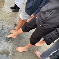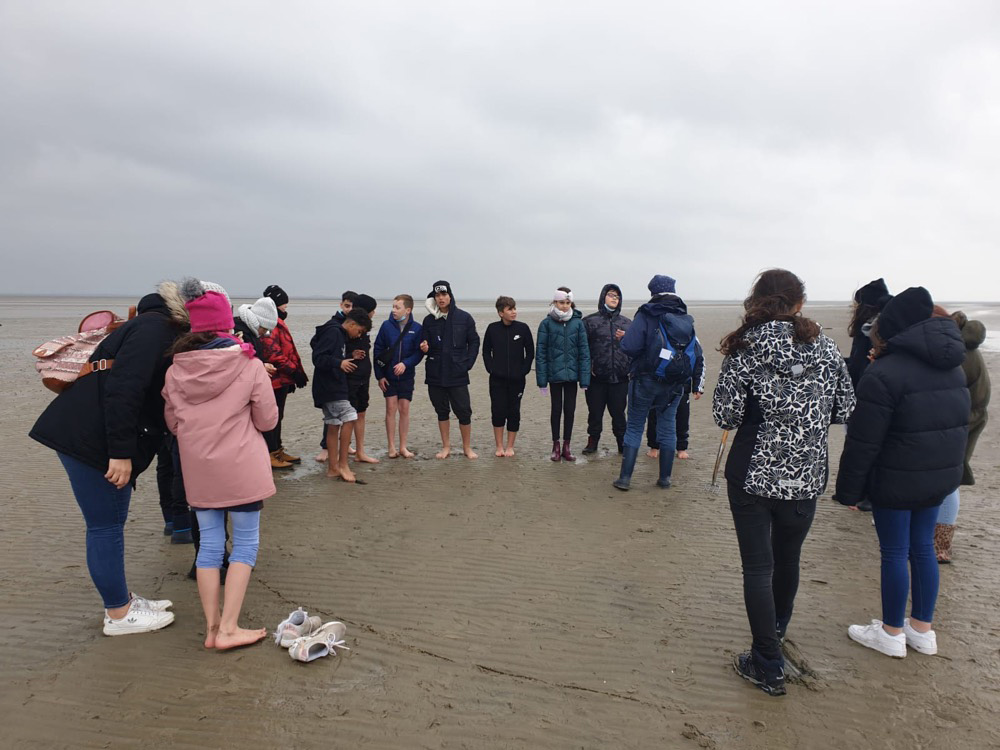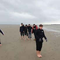 Am Mittwoch ging es bei starkem Wind zu einer geführten Wattwanderung. Dort konnten die Schüler an ihre Vorkenntnisse aus dem Unterricht anknüpfen und mehr über das Wattenmeer und dessen Bewohner lernen. Die Schüler hatten die Gelegenheit selbst verschiedene Muscheln, Krebse und Wattwürmer zu suchen und auch anzufassen, was ein einmaliges Erlebnis war. Da nicht alle passendes Schuhwerk dabei hatten, sind einige bei frischen Temperaturen barfuß gelaufen. Das Watt löste sehr gemischte Reaktionen bei den Schülern aus; von sehr angenehm bis absolut eklig. Da das Wetter sehr ungemütlich war, wurde der Nachmittag für einen Klassenrat und gemeinsames Spielen in der Jugendherberge genutzt.