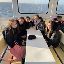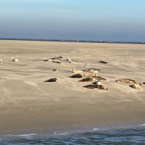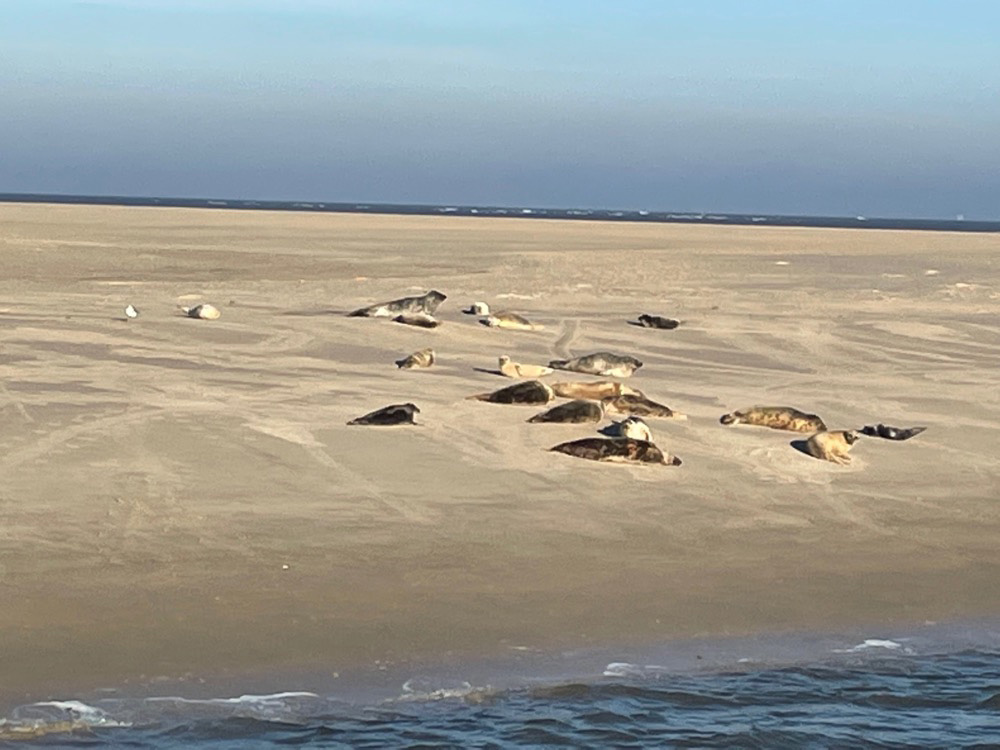 Wir standen wie gewohnt auf und gingen frühstücken. Dann machten wir uns eine Lunchbox und kurze Zeit später machten wir uns auf den Weg. Wir liefen zur Fähre, hier warteten wir kurz und stiegen dann ein. Während der Fahrt hörten wir viele spannende Informationen rund um Wangerooge und die Seehunde. Plötzlich wurde uns gesagt, dass wir leise sein mussten, und wenn wir Fotos machen, dann ohne den Blitz zu verwenden, weil es sehr scheue Tiere sind. Nun fuhren wir an der sogenannten Seehundbank vorbei. Das war so schön und die Babys waren sehr süß. Danach kehrten wir um und wir konnten sie nur noch ein letztes Mal sehen. Zurück angekommen, kehrten wir in die Jugendherberge zurück.