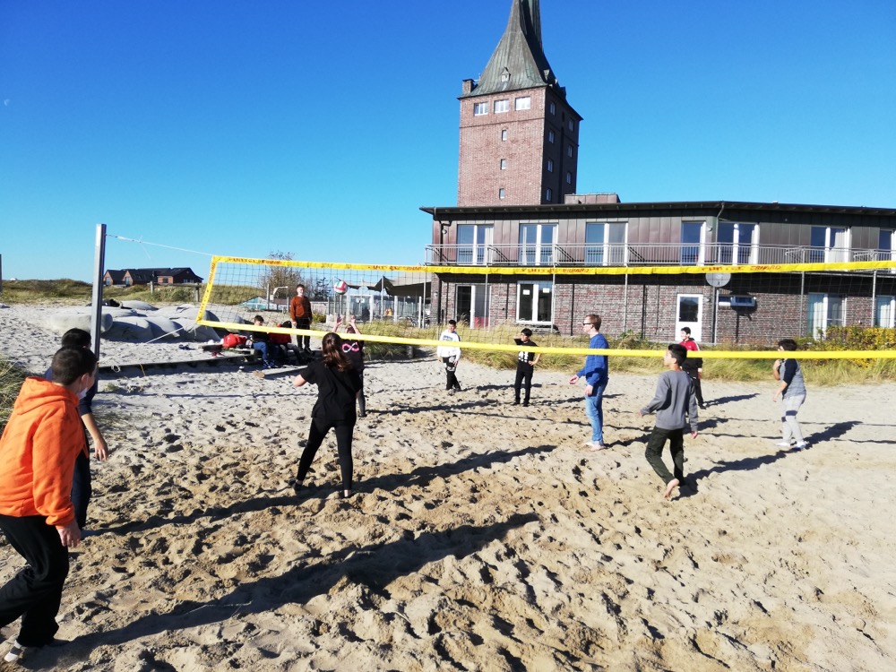 Am 25. Oktober 2021 nachts ging es los nach Wangerooge. Die Fahrt in den modernen Bussen verging wie im Flug und gegen 10 Uhr morgens erreichten wir Harlesiel. Dort hatten wir Zeit den Ort zu erkunden und den Spielplatz zu nutzen, bevor wir die Fähre nach Wangerooge nahmen. Nachmittags kamen wir bei typisch norddeutschem Wetter an der Jugendherberge an. Die meisten Schüler waren im historischen Westturm untergebracht, von dem man einen schönen Blick auf das Meer hat. Die Schüler richteten sich in ihren Zimmer ein und hatten Zeit das Gelände zu erkunden.