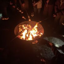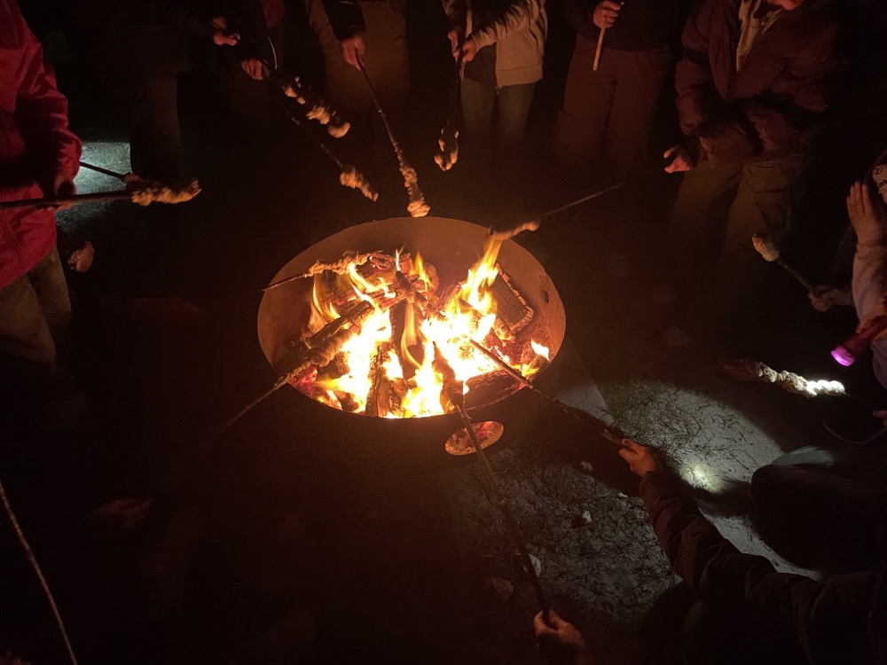 Als es dunkel wurde, machten wir ein Lagerfeuer und aßen Stockbrot. Besonders cool war, dass wir dabei gemeinsam Musik hörten und sangen.