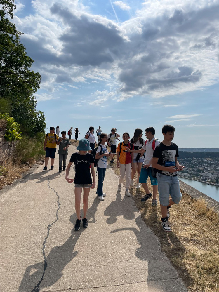Ein spannendes erstes Schuljahr an der Anne-Frank-Schule wurde vom Jahrgang 5 mit einer abwechslungsreichen Klassenwoche beendet. Ausflüge und noch vieles mehr standen auf dem Programm. Dabei waren die Schüler*innen mit ihren Klassenlehrer*innen sowohl zu Fuß, als auch mit dem Zug, dem Rad und sogar mit der Seilbahn unterwegs. Rüdesheim wurde unsicher gemacht und gepicknickt im Rüsselsheimer Ostpark. Einen Tag nutzten die Klassen, um in Fuß- und Völkerball gegeneinander anzutreten. Man lernte sich, seine eigenen Mitschüler*innen, aber auch die Kinder der anderen Klassen nochmal von ganz neuen Seiten kennen.
