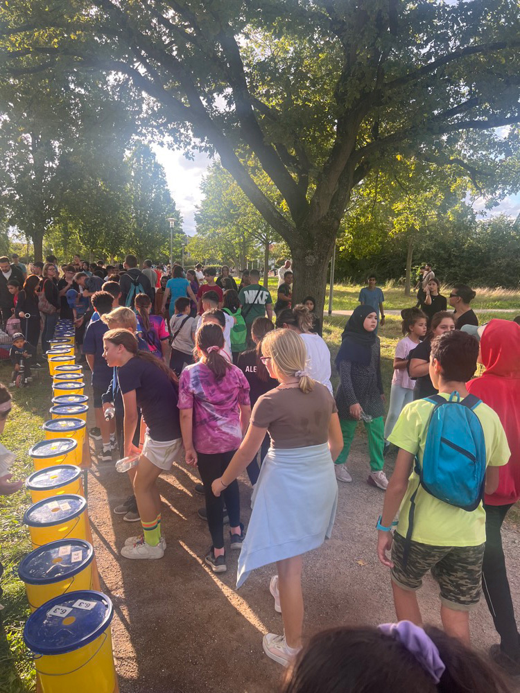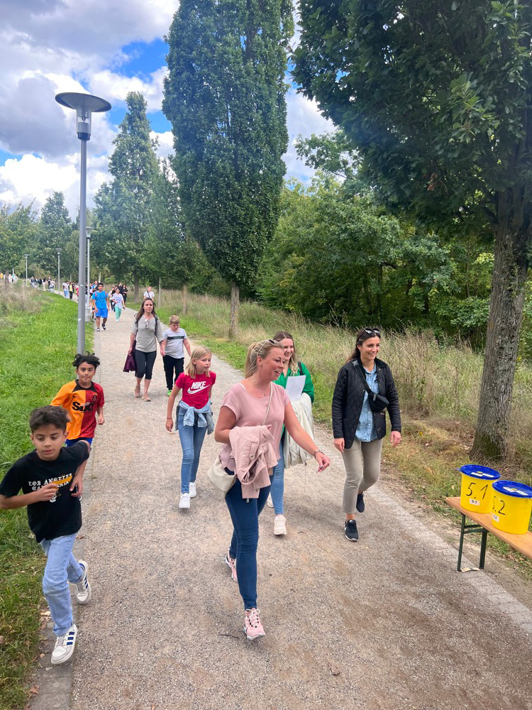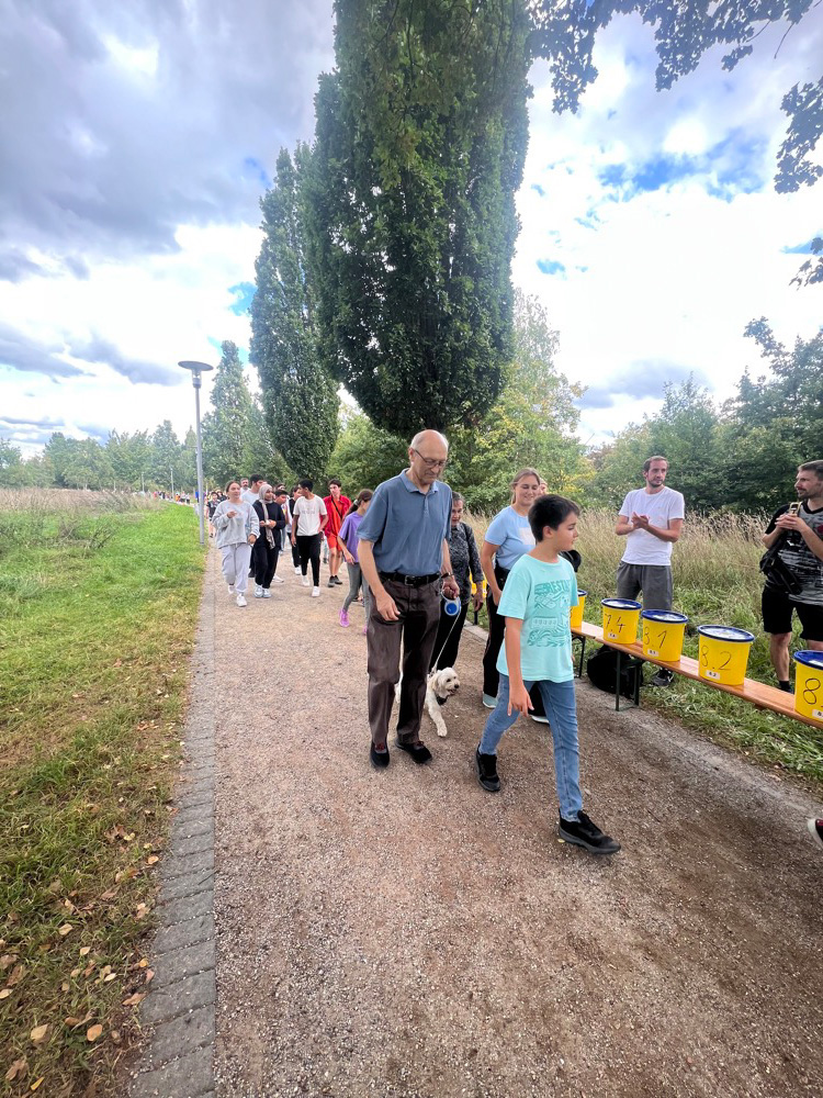 Am Freitag, den 22.09.2023 fand wieder der legendäre Lauf um die Lache statt. Das Wetter war angenehm und bot optimale Laufbedingungen. Schüler*innen, Lehrkräfte, Freund*innen und Verwandte machten sich auf den 1.3 km langen Rundlauf um die Lache, um möglichst viele Chips für ihre Klassen zu erlaufen. Mit starken 191 Runden sicherte sich die Klasse 6.3 von Frau Brugger und Herrn Ghazi, knapp vor der Klasse 5.3, den Gewinn des Wanderpokals. Dritter wurde die Klasse 7.4. Belohnt wurde die tolle Leistung der drei laufstärksten Klassen mit einer Klassenkassenspende des Fördervereins. Insgesamt gebührt aber allen Teilnehmenden, die beim Lauf ihr Bestes gaben, ein großes Lob. Vor allem sollte aber das gemeinsame Miteinander und der Spaß im Vordergrund stehen. Ausgepowert aber mit einem Lächeln im Gesicht ging es dann ins wohlverdiente Wochenende.