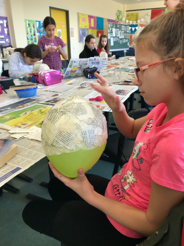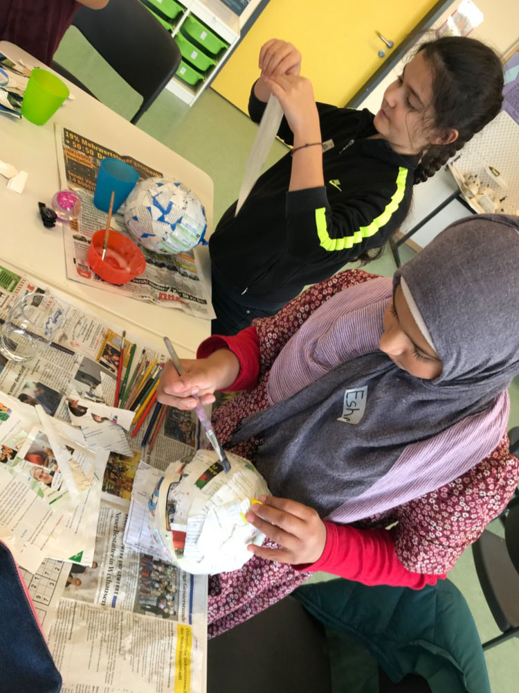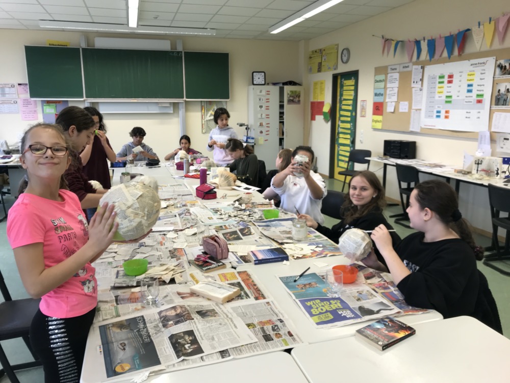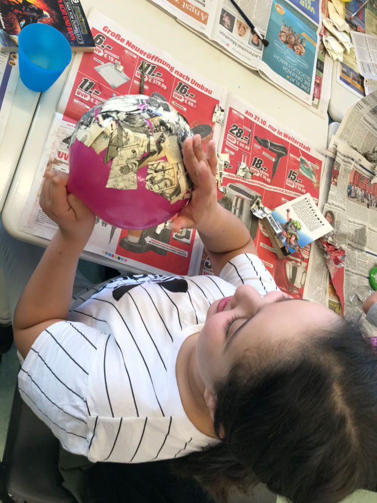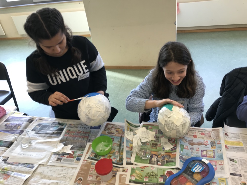 Am zweiten Tag haben wir begonnen mit Pappmache zu arbeiten, um z.B. Schüsseln herzustellen. Außerdem haben wir Blumen gebastelt.