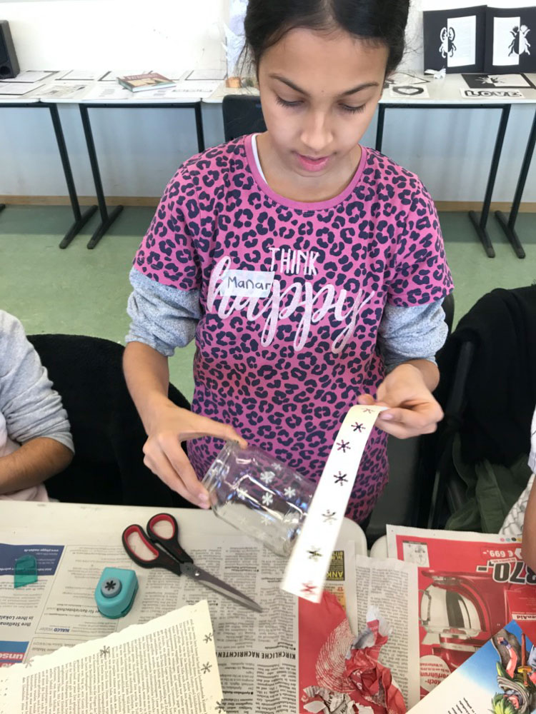 Am dritten Tag konnten wir die Namen beenden, die wir in Bücher gefaltet hatten. Damit hatten wir schon am zweiten Tag angefangen. Und einige haben wieder Blumen gebastelt. Das waren drei tolle Tage.