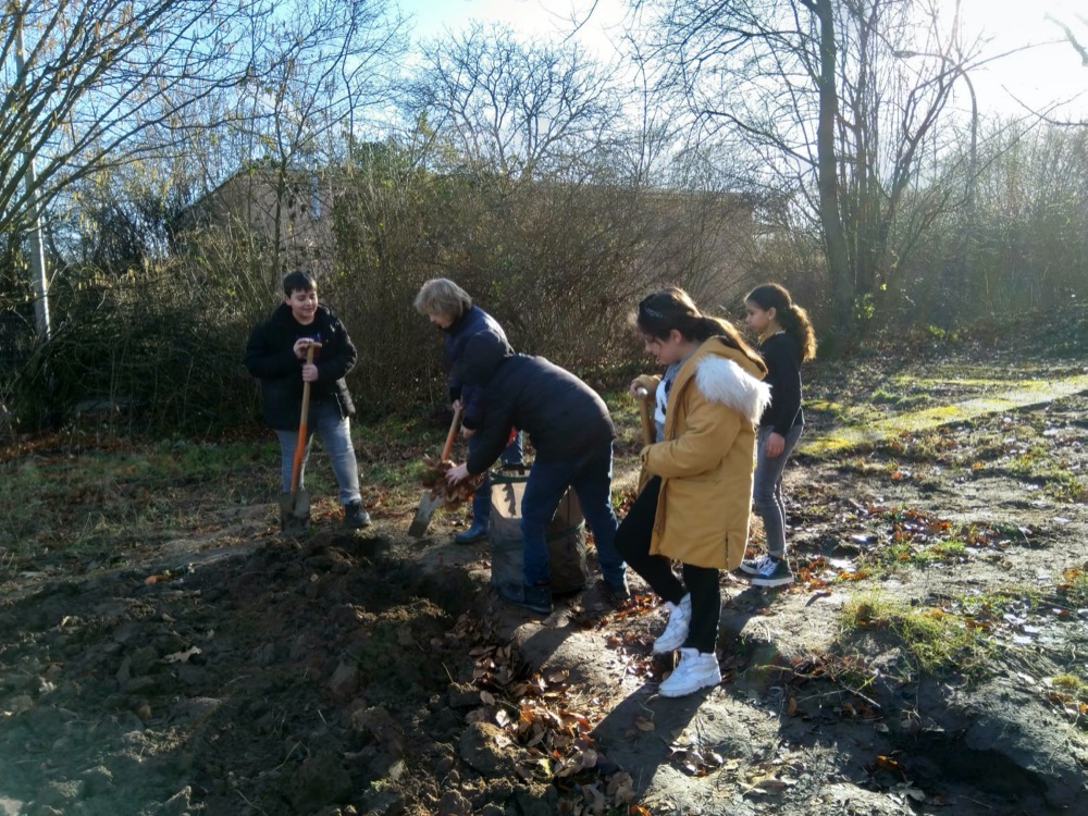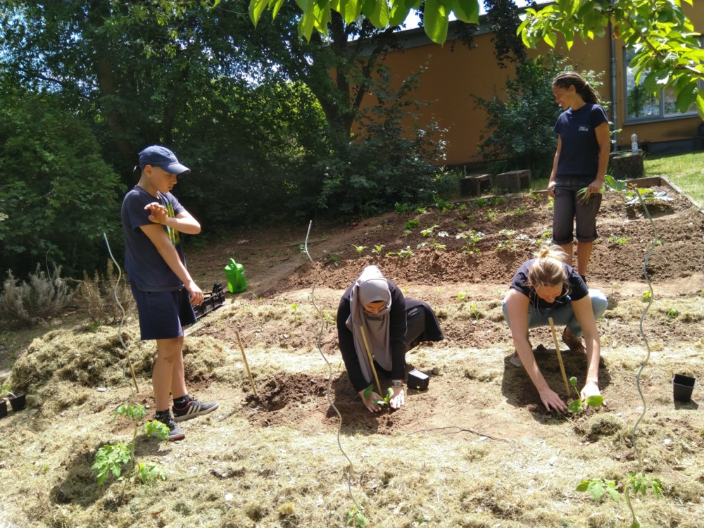 Seit Februar 2020 wird in unserem Schulgarten der Anne-Frank-Schule fleißig geackert. Verantwortungsvoll und einfühlsam arbeiten eine Intensivklasse und eine 5. Klasse im Schulgarten. In den Ferien sorgen die Schulbetreuung und einige Eltern für das Wässern und Unkrautjäten.