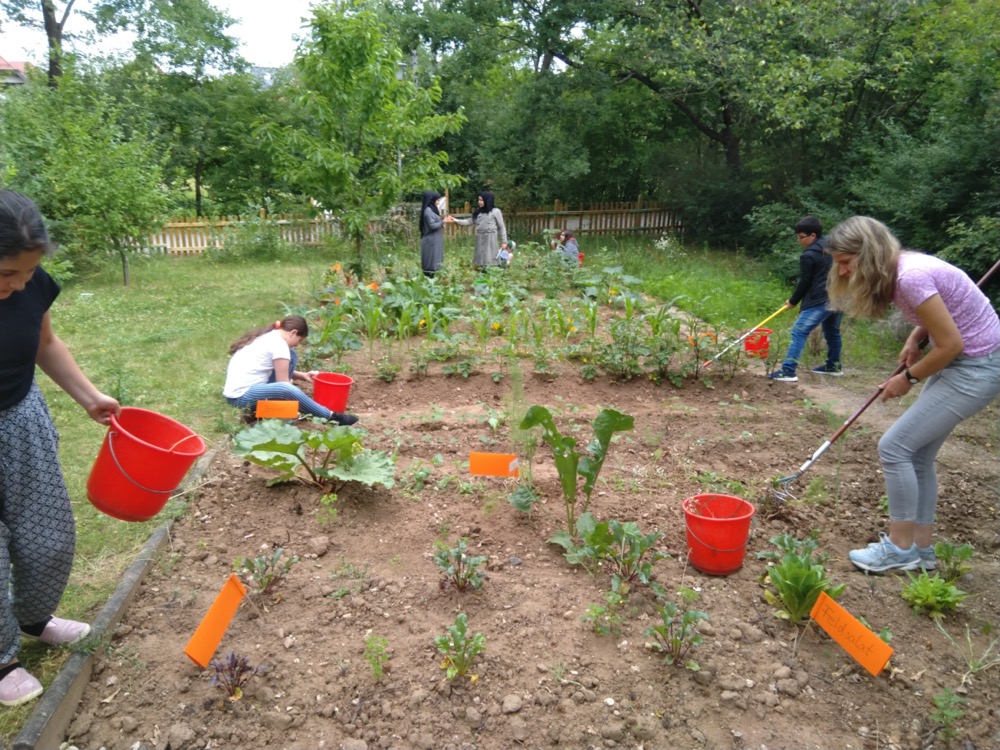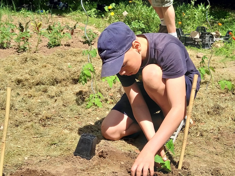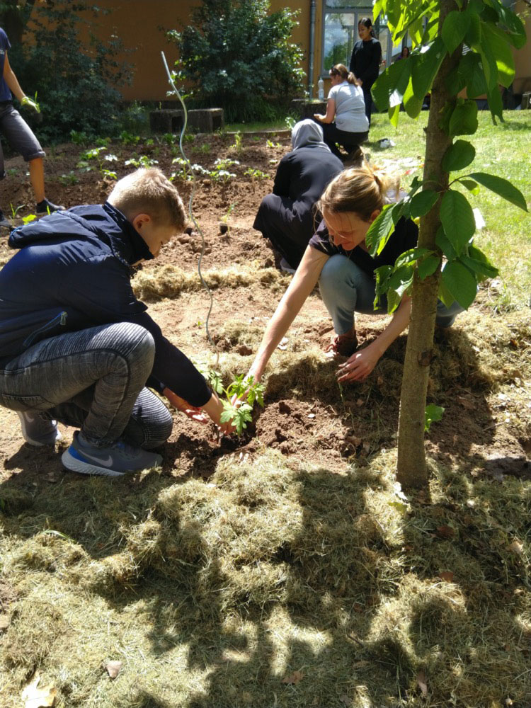 Während sich die SuS der 5. Klasse mit praktischen Ackertätigkeiten und biologischen Einheiten beschäftigen, lernen die Jugendlichen der Intensivklasse, die in der Regel bereits Erfahrungen mit der Arbeit auf dem Acker haben, neue Begriffe rund um den Garten und das Gemüse kennen. Unter fachlicher und pädagogischer Anleitung von Klassenleitungen und der Schulsozialarbeit startet für die jungen Gärtner eine Reise. Der Schulgarten wird als Lernort genutzt, auf dem die Jugendlichen ihr Wissen und ihre Stärken entdecken. Sie erkunden und erleben die natürliche Produktion von Lebensmitten. Dabei begegnen sie der Vielfalt der Kleinst- und Kleintiere, die dem Gemüseanbau entweder nützlich oder schädlich sein können. Darüber hinaus setzen sie sich damit auseinander, wie das Gemüse vom Acker über den Handel auf den Teller kommt. „Eine Generation, die weiß, was sie isst“ – dafür setzt sich der gemeinnützige Verein Ackerdemia mit seinem Bildungsprogramm GemüseAckerdemie ein. Unsere Schule kooperiert mit der GemüseAckerdemie mit dem Ziel, bei den Lernenden ein Bewusstsein dafür zu schaffen, welche globalen Auswirkungen unser Handeln vor Ort hat. Innerhalb eines Jahres bauen Kinder bis zu 30 verschiedene Gemüsearten an und lernen alles rund um Natur, Landwirtschaft und Nachhaltigkeit. Sie haben nicht nur Spaß am Entdecken und Arbeiten im Garten sondern auch am gemeinsamen Zubereiten der internationalen Gerichte. So bekommen sie eine hohe Wertschätzung für Natur und Lebensmittel und entwickeln ein bewusstes und nachhaltiges Konsumverhalten im alltäglichen Leben.