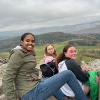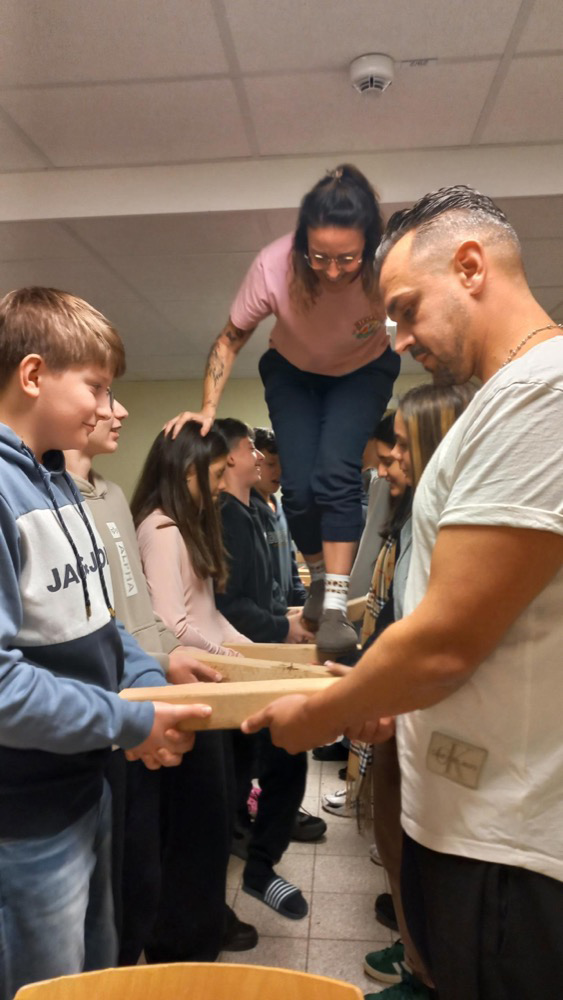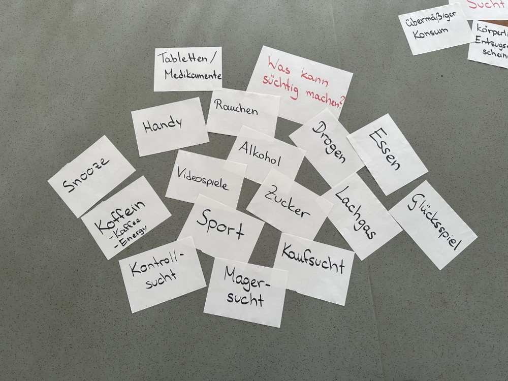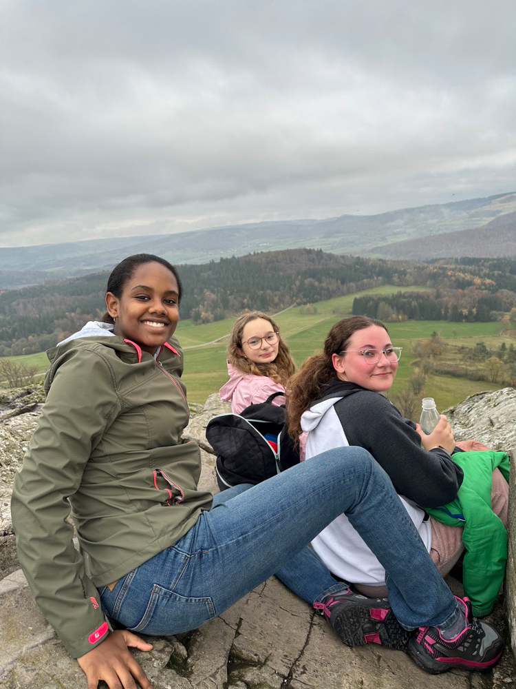 Dienstag und Mittwoch: Jetzt ging es schon vormittags mit viel Arbeit los. Es gab ganz viele Übungen, um unsere Klassengemeinschaft zu stärken und Vertrauen aufzubauen. Wir sprachen aber auch über Süchte und was alles aus welchen Gründen süchtig machen kann. Außerdem wurde gewandert – einmal um die Milseburg drum rum und einmal auf sie hinauf.