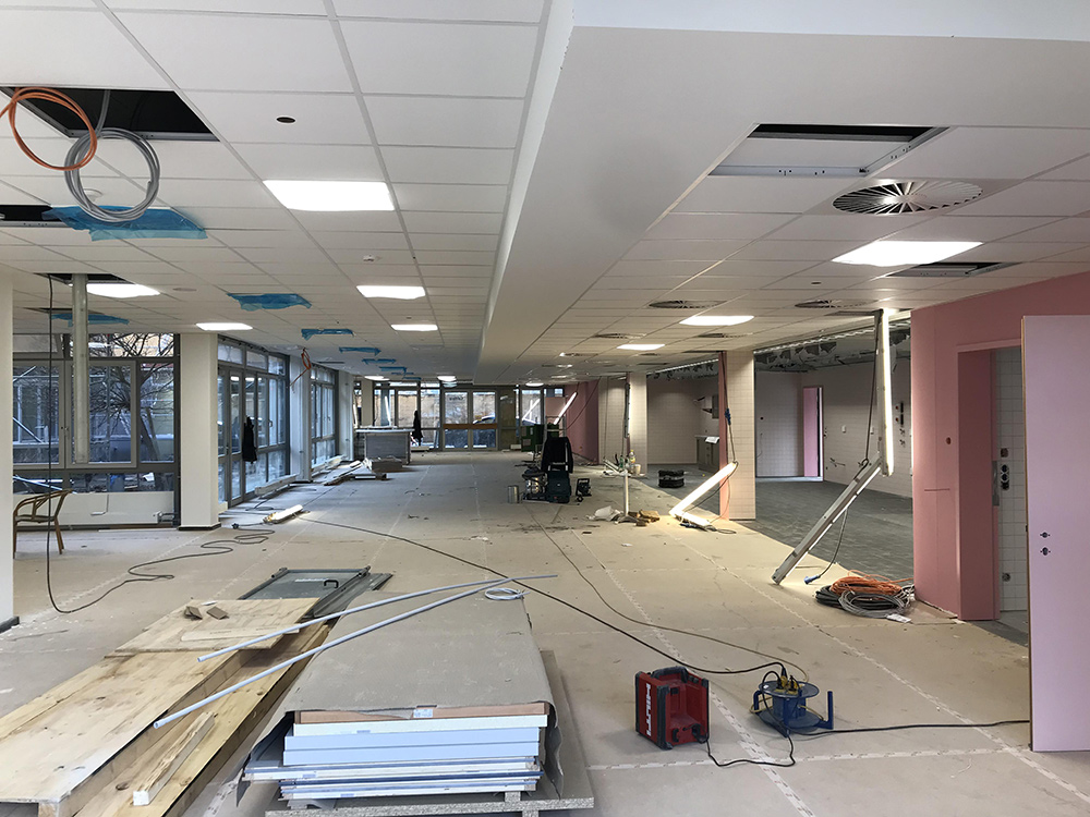 Es nimmt langsam aber sicher Formen an im Erdgeschoss der Anne-Frank-Schule und man kann schon erahnen, wo die Reise hinführt.
