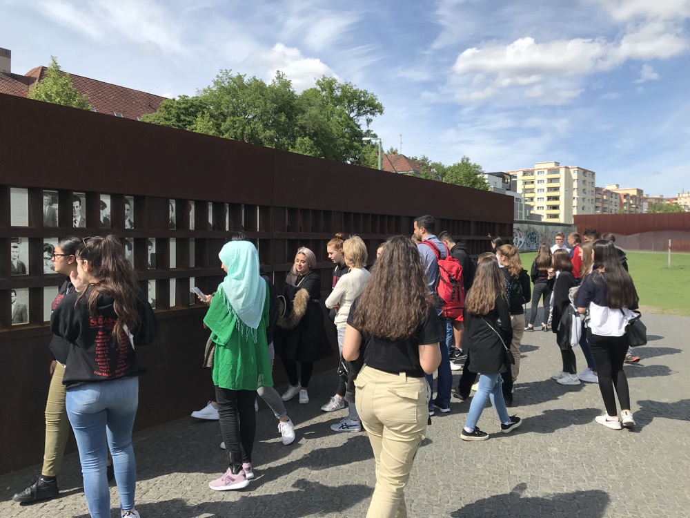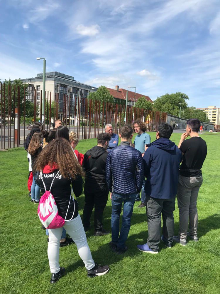 Nach der spannenden Tour gab es als Ergänzung dazu noch eine Führung des Dokumentationszentrums Berliner Mauer, wo uns erst richtig bewusstwurde, wie schwierig das Leben damals eigentlich für viele Leute im Ostteil der Stadt war. Der übriggebliebene Teil der Mauer wurde uns gezeigt. In der Nähe war auch eine Gedenkwand, auf der Bilder von Opfern zu sehen waren, die versucht hatten, die Mauer zu überwinden. Das ging uns sehr nah.