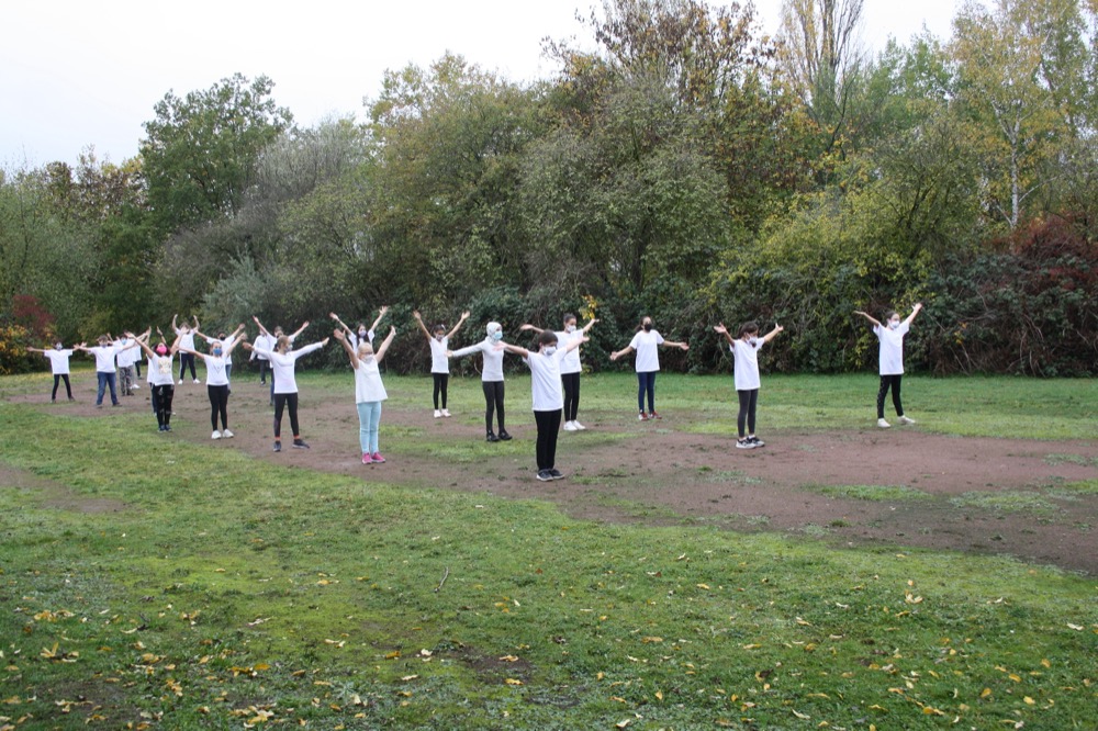 Wir haben diesen „Gesundheitsspiele Tanz“ sehr oft geübt. Es war sehr anstrengend aber die harte Arbeit - zwei Wochen haben wir im Sportunterricht den Tanz im Freien eingeübt - hat sich gelohnt.