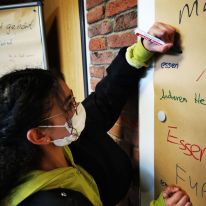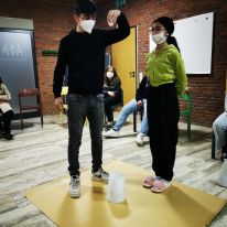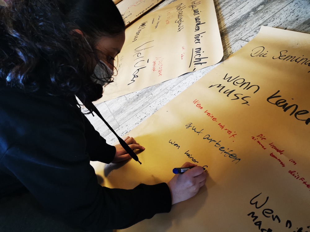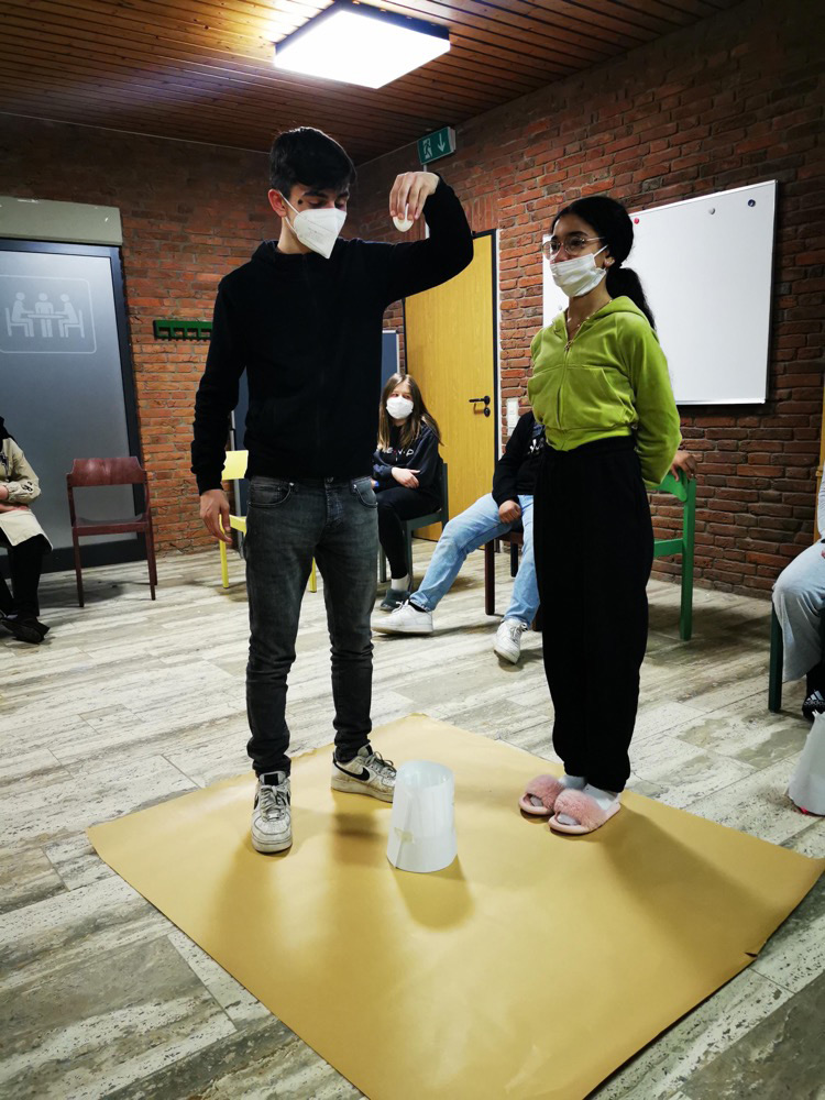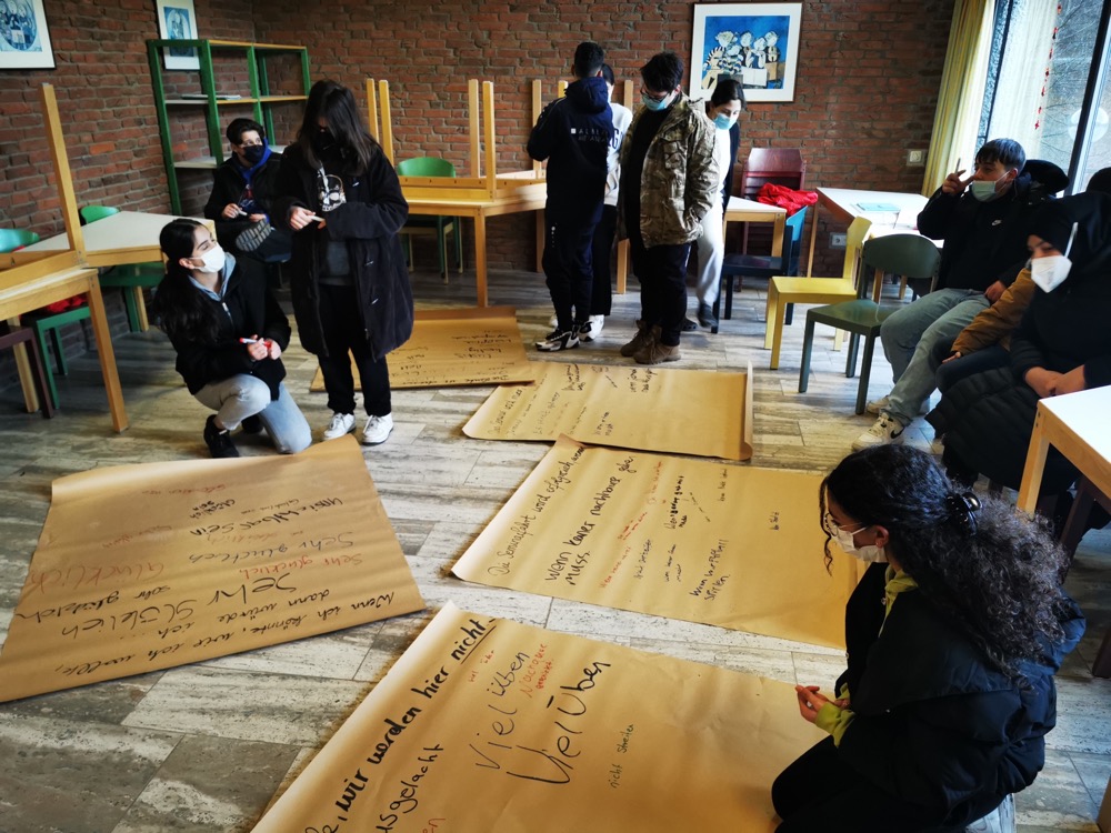 Dann trafen wir uns im Seminarraum. Wir machten weitere Übungen. Um 22.00 Uhr wurden wir auf unsere Zimmer geschickt, um uns bettfertig zu machen. Nach 15 Minuten kamen Frau Hamberger und Herr Pohl, um uns Punkte für die Zimmerolympiade zu verteilen.