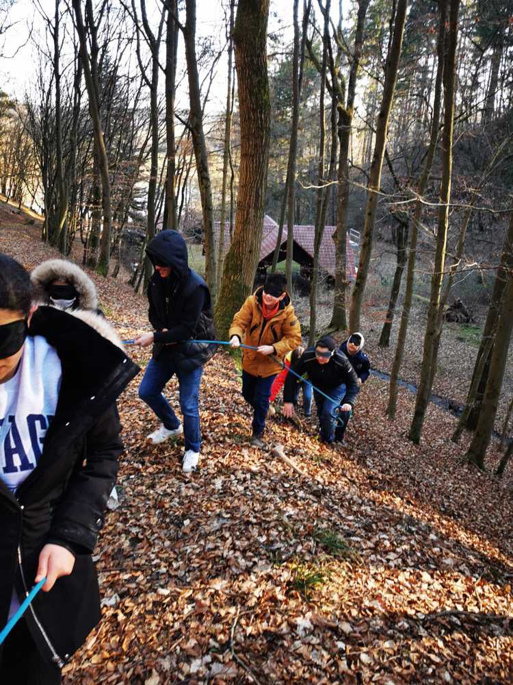Nach dem Mittagessen hatten wir bis 14.00 Uhr Freizeit. Um 14.00 Uhr trafen wir uns und gingen bis 17.30 Uhr in den Wald. Dort fanden Übungen mit Schlafmasken statt. Wir wurden blind geführt und mussten uns auf andere verlassen. Dann liefen wir zurück zur Jugendherberge. Da gab es auch schon bald Abendessen. Als wir fertig gegessen hatten, gingen wir zurück zu unseren Zimmern. Ein paar von uns haben geduscht und ein paar waren mit Freunden draußen. Bis 20.00 Uhr hatten wir Freizeit, dann mussten wir uns wieder im Seminarraum treffen. Wir besprachen, wie wir den Tag fanden. Dann machten wir eine Traumreise zum Entspannen. Als die Traumreise zu Ende war, durften wir zurück in unsere Zimmer, um uns bettfertig zu machen. Zum Abschluss kamen Frau Hamberger und Herr Pohl, um uns wieder Punkte für das Zimmer zu verteilen. Nachdem sie weg waren, legten wir uns schlafen.