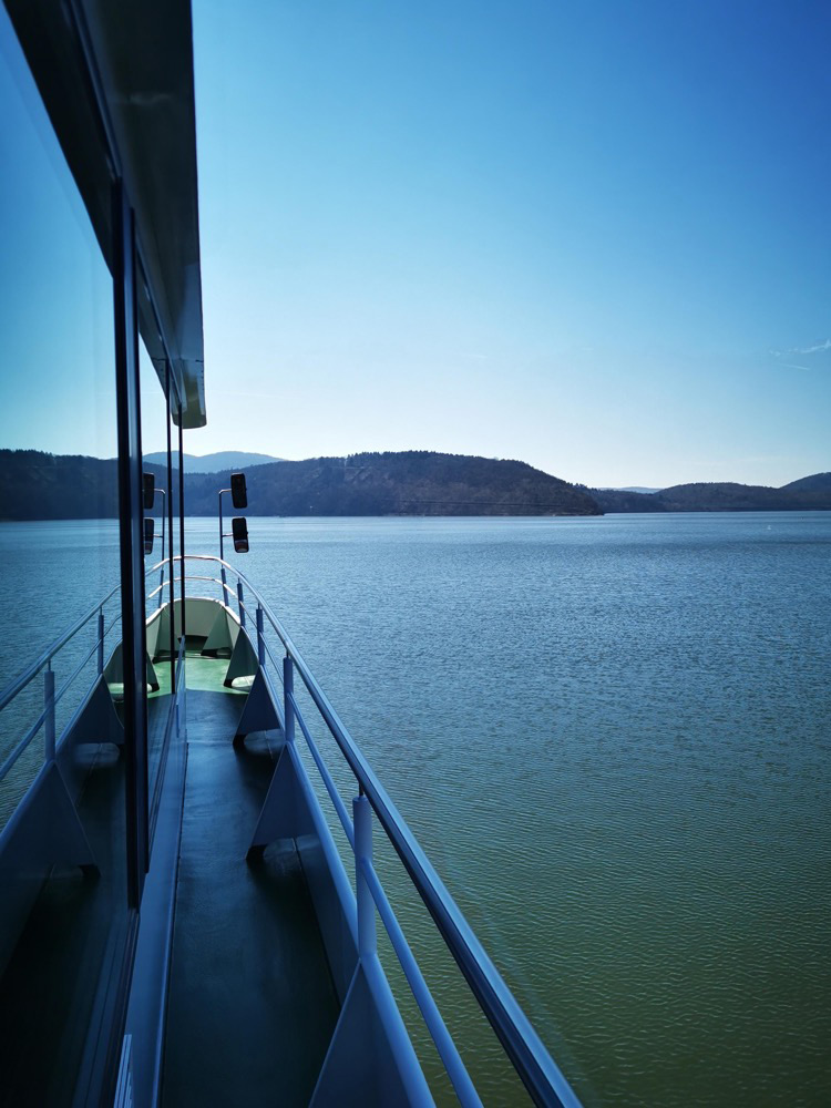Um 7.00 Uhr wurden wir wieder aufgeweckt. Heute waren wir dran mit unserem Ausflug. Nach dem Frühstück bekamen wir ein Lunchpaket und wir mussten uns zwei Brötchen für den Ausflug machen. Um 9.00 Uhr holte uns ein Bus an der Jugendherberge ab. Er fuhr uns zum Schloss Waldeck. Dort bekamen wir eine Führung. Das Schloss war wunderschön, auch die Aussicht von dort war schön. Nach der Führung liefen wir runter Richtung See. Dort hatten wir 30 Minuten Pause auf einem Spielplatz und mussten auf das Schiff warten, das uns auf die andere Seite des Edersees brachte. Wir fuhren mit dem Schiff an der Staumauer vorbei. Dann hatten wir noch einmal 40 Minuten Pause und liefen dann gemeinsam zum Wildtierpark. Dort sahen wir uns eine Greifvogelshow an. Nach der Show besuchten wir noch die anderen Tiere im Wildtierpark. Von dort aus liefen wir dann wieder zurück über die Staumauer bis zu einer Bushaltestelle, wo uns unser Bus wieder abholte. An der Jugendherberge angekommen, aßen wir Abendessen. Bis 20.00 Uhr hatten wir wieder Freizeit. Um 20.00 Uhr trafen wir uns im Seminarraum und sprachen wieder über den Tag und die ganze Woche am Edersee. Um 22.00 Uhr packte ich meinen Koffer zu Ende, weil wir am nächsten Tag nach Hause fuhren. Frau Hamberger und Herr Pohl kamen wieder, um uns unsere Punkte zu verteilen.