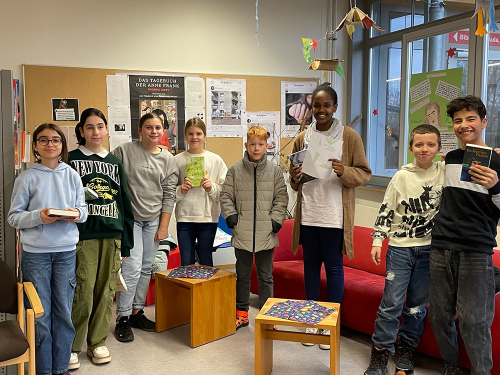 Am 6. Dezember wurde der diesjährige schulinterne Vorlesewettbewerb der Anne-Frank-Schule ausgetragen. In den Klassen des Jahrgangs 6 wurden zuvor Klassensieger*innen ermittelt, die in der Schülerbücherei nun gegeneinander antraten, um herauszufinden, wer von ihnen Schulsieger*in werden würde.