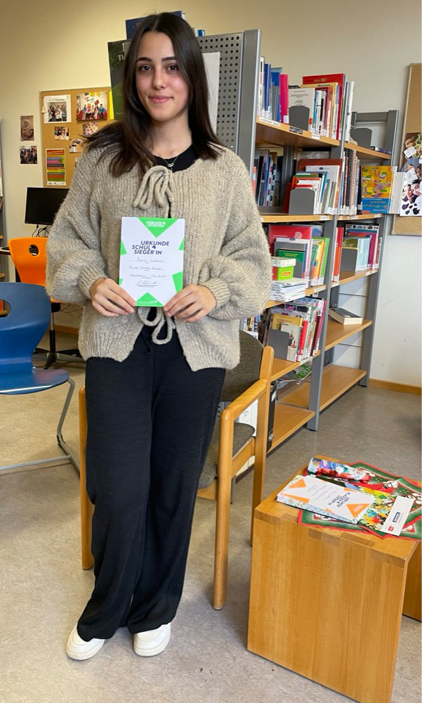 Die Jury, die aus Lehrerinnen, der Schulleitung und der Schülervertretung bestand, musste lange beraten, um den Schulsieger zu ermitteln. Azra Coskun aus der 6.4 gewann den diesjährigen Vorlesewettbewerb und kommt in die nächste Runde. Herzlichen Glückwunsch!