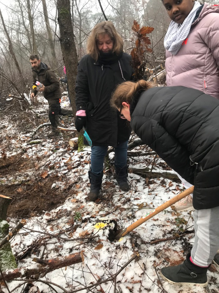 Am 20. Dezember 2022 waren wir, die Klasse 5.4, mit der Klasse 5.2 und Frau Jechimer Bäume pflanzen in der Nähe von Pinta Beach. Manche aus der Klasse hatten das die Woche davor auch schon gemacht und erklärten uns, was wir machen müssen. Überall, wo der Förster gelbe Markierungen gemacht hatte, durften wir eine kleine Eiche einpflanzen. Die orangemarkierten Punkte sollten wir überspringen – die waren für eine andere Baumsorte reserviert. An diesem Tag waren wir richtige Waldarbeiter und setzen ganz viele Bäume.