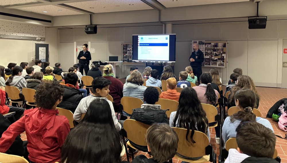 Heute am Mittwoch dem 8.11.23, waren Kommissar Schwarz und Hauptkommissarin Thomas bei uns Sechstklässlern in der Anne-Frank-Schule. Es ging um das Thema Gewalt und die verschiedenen Formen davon wie. z.B. Cybermobbing oder sexualisierte Gewalt und welche Konsequenzen es hat, Sachen zu verbreiten von Lehrern oder Schülern. Das Verbreiten von z.B. Fotos oder Tonaufnahmen von Lehrern oder Schülern ohne deren Erlaubnis ist strafbar. Auch das Teilen und Weiterleiten solcher Aufnahmen ist strafbar. Das Handy kann sozusagen wie eine Waffe sein. Sexualisierte Gewalt ist z. B. wenn jemand unerlaubt am Po angefasst wird. Das sollte man nicht ignorieren oder einfach weitergehen, sondern deutlich sagen, dass dieses Verhalten nicht in Ordnung ist. Politische Gewalt ist z. B. wenn man die Herkunft oder Hautfarbe beleidigt. Zum Cybermobbing zählt z. B. wenn man Fake-Inhalte über jemanden verbreitet oder immer wieder beleidigende und böse Kommentare postet.